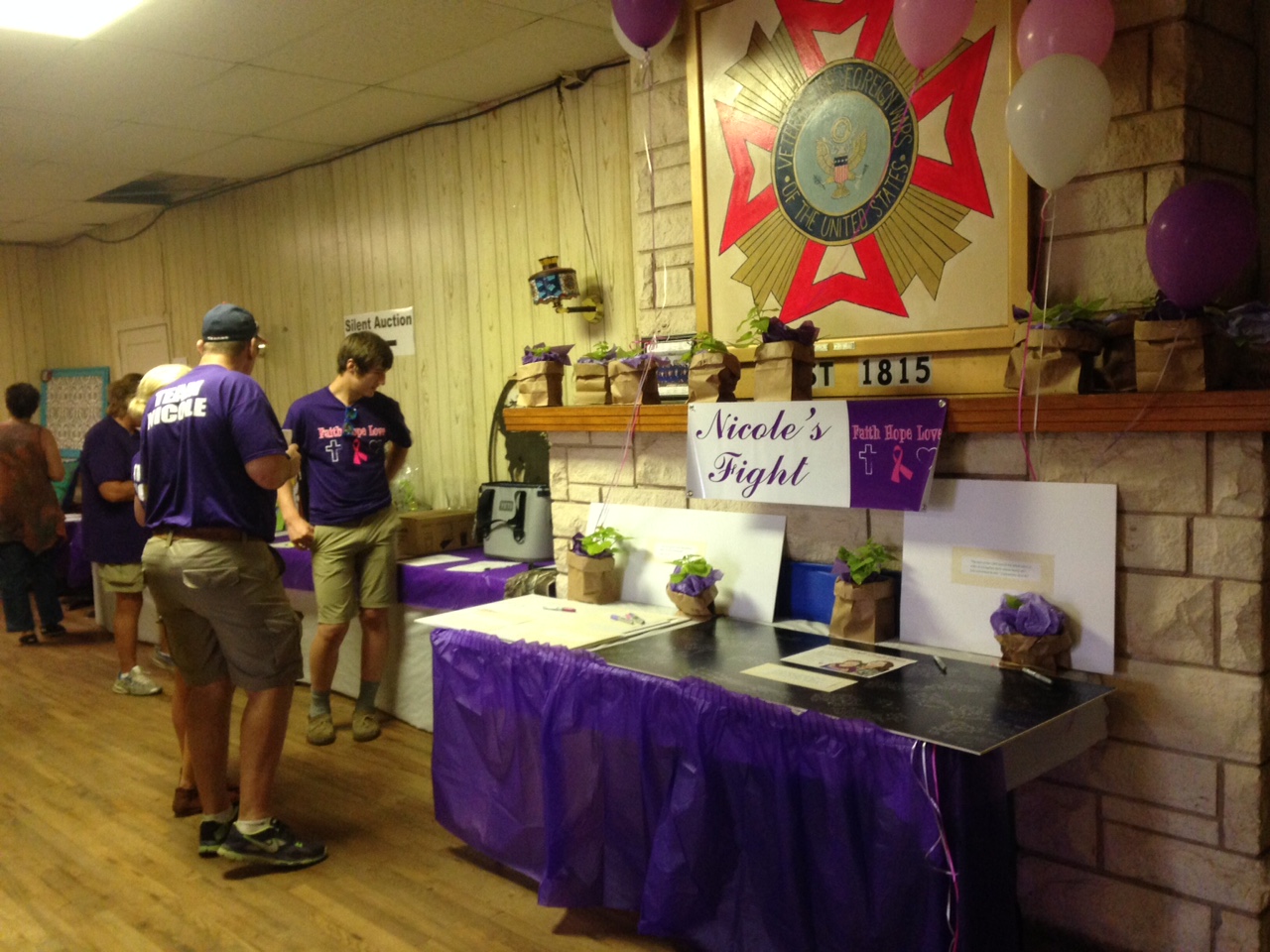 At least 100 people in purple milled about the various maze-like rooms the city’s VFW hall throughout the day, eyeing items set out for auction and sipping cold beer fresh from the tap. Outside, kids monitored by volunteers bounced in colorful inflatable houses.