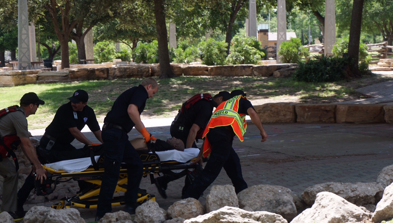 Battalion Chief Long of the San Angelo Fire Department stated that his personnel have pulled a man out of the river, however they are not currently aware of his condition.