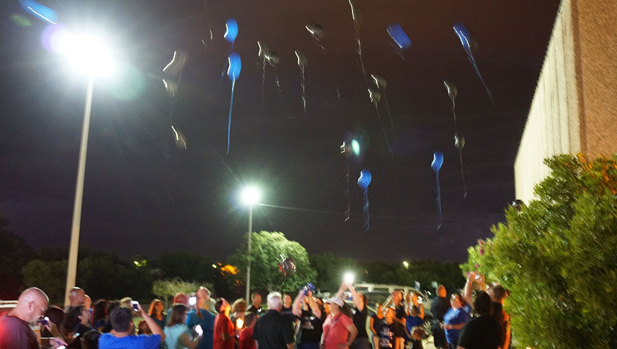 Friday night, two vigils were held. The first, at 9 p.m. was at the scene of the tragic accident in the 3200 block of Knickerbocker Road. There, about 30 citizens and family members gathered for a release of black and blue balloons. Also there was Ami Fizell-Flint, who currently serves on the Board of Trustees for the San Angelo ISD. She said she remembered Kennedy’s dedication to his daughters.
