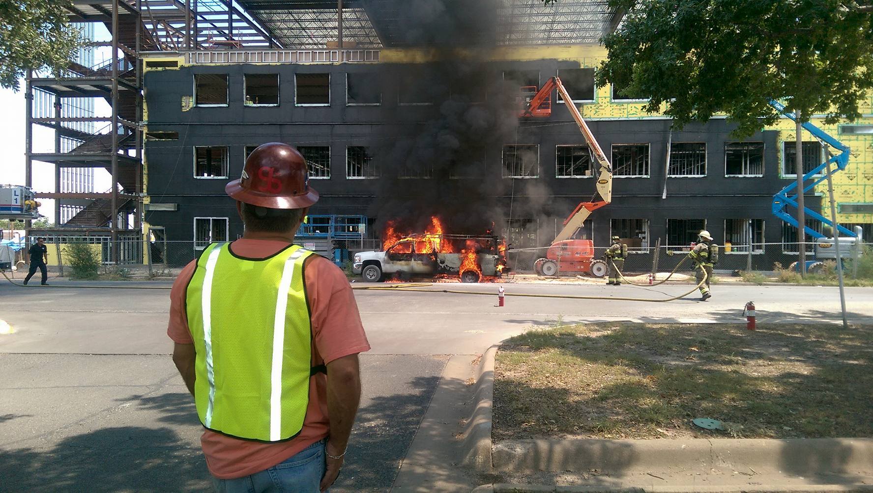 Immediately adjacent to where the flaming truck was is a four-story commercial building under construction next to the Shannon Medical Center.