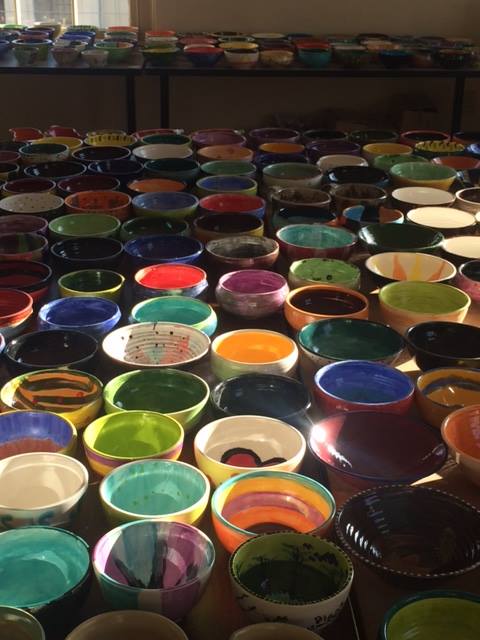 ABOVE: Volunteers at the Empty Bowl Event handed out donated bowls to attendees.