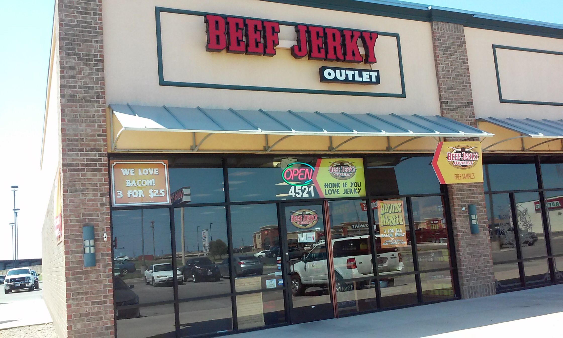 The Beef Jerky Outlet is located at 4521 Sherwood Way in San Angelo behind Outback Steakhouse. Store hours are 10 a.m. to 7 p.m. daily. Bacon Mania will run through Father’s Day, June 18.