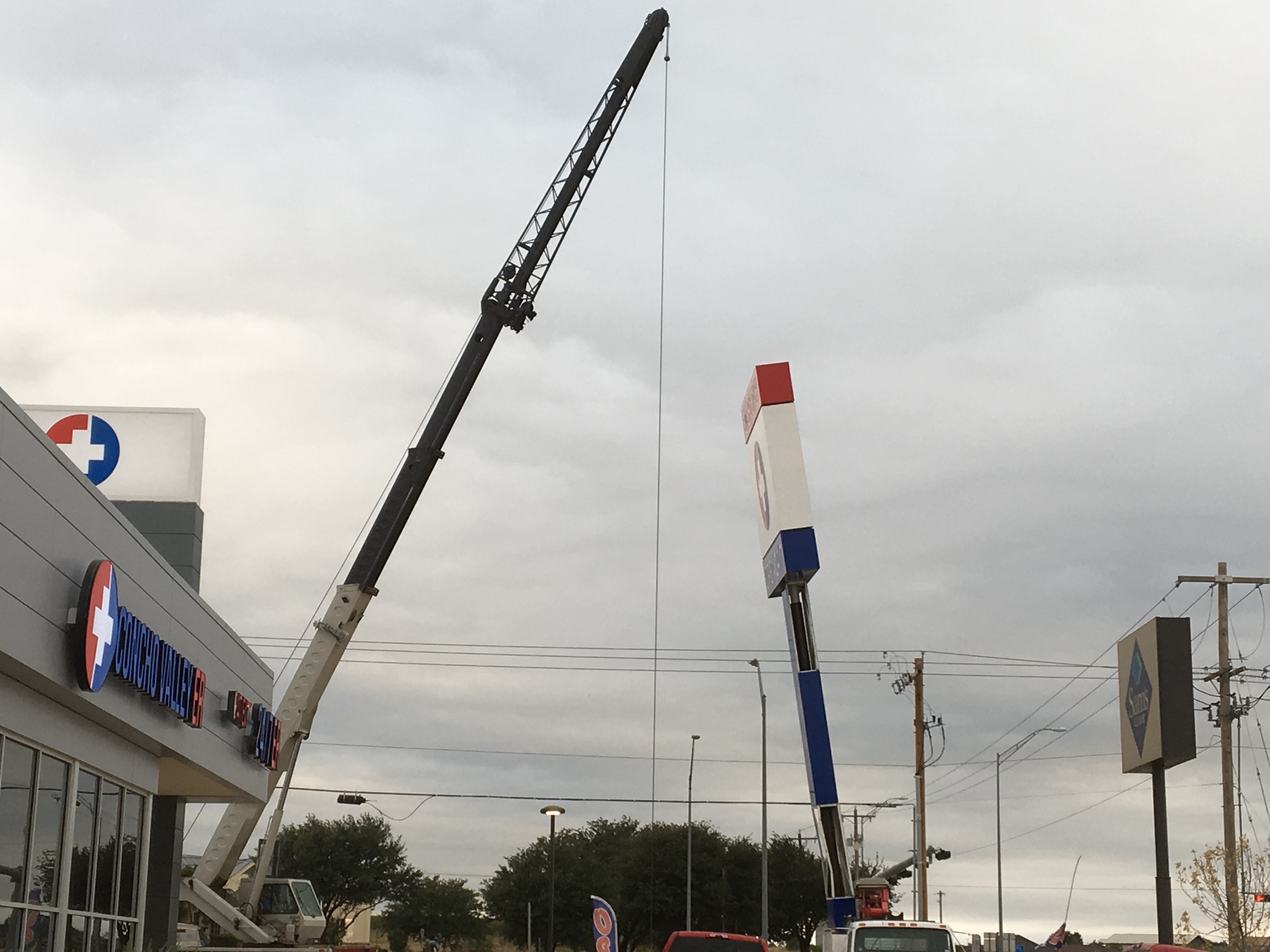 Sign crews were seen at the new Concho Valley ER on Sherwood Way. Their sign became hazard as wind turned the sign into a leaning hazard. Debris still litters the Walmart parking lot on Sherwood Way.