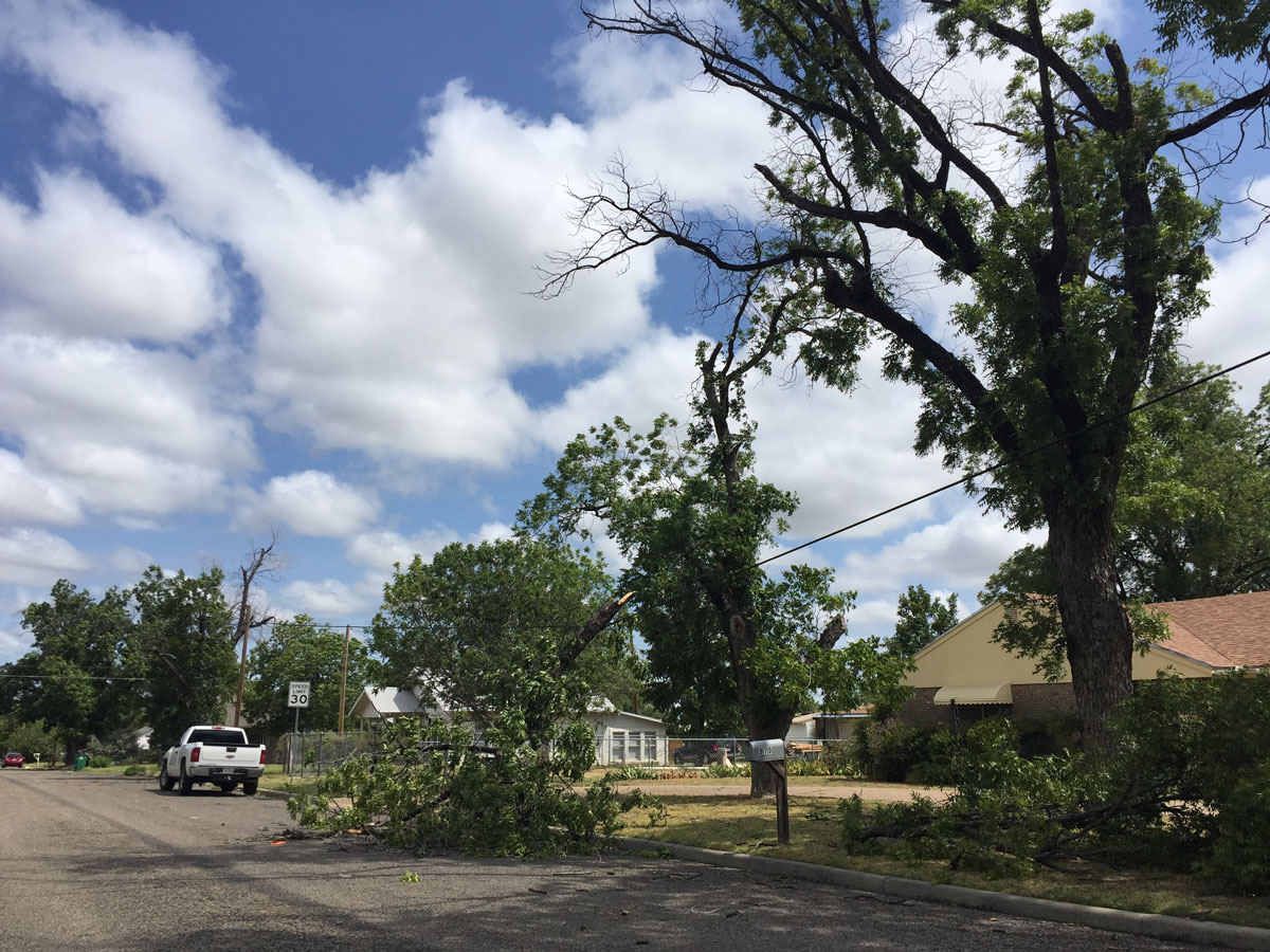 SAN ANGELO, TX — City crews are continuing their efforts to clear city streets and alleys of large limbs and debris left in the wake of Friday’s thunderstorms. This initial effort is to ensure citizens can safely travel the streets and utility companies can access lines for repairs.
