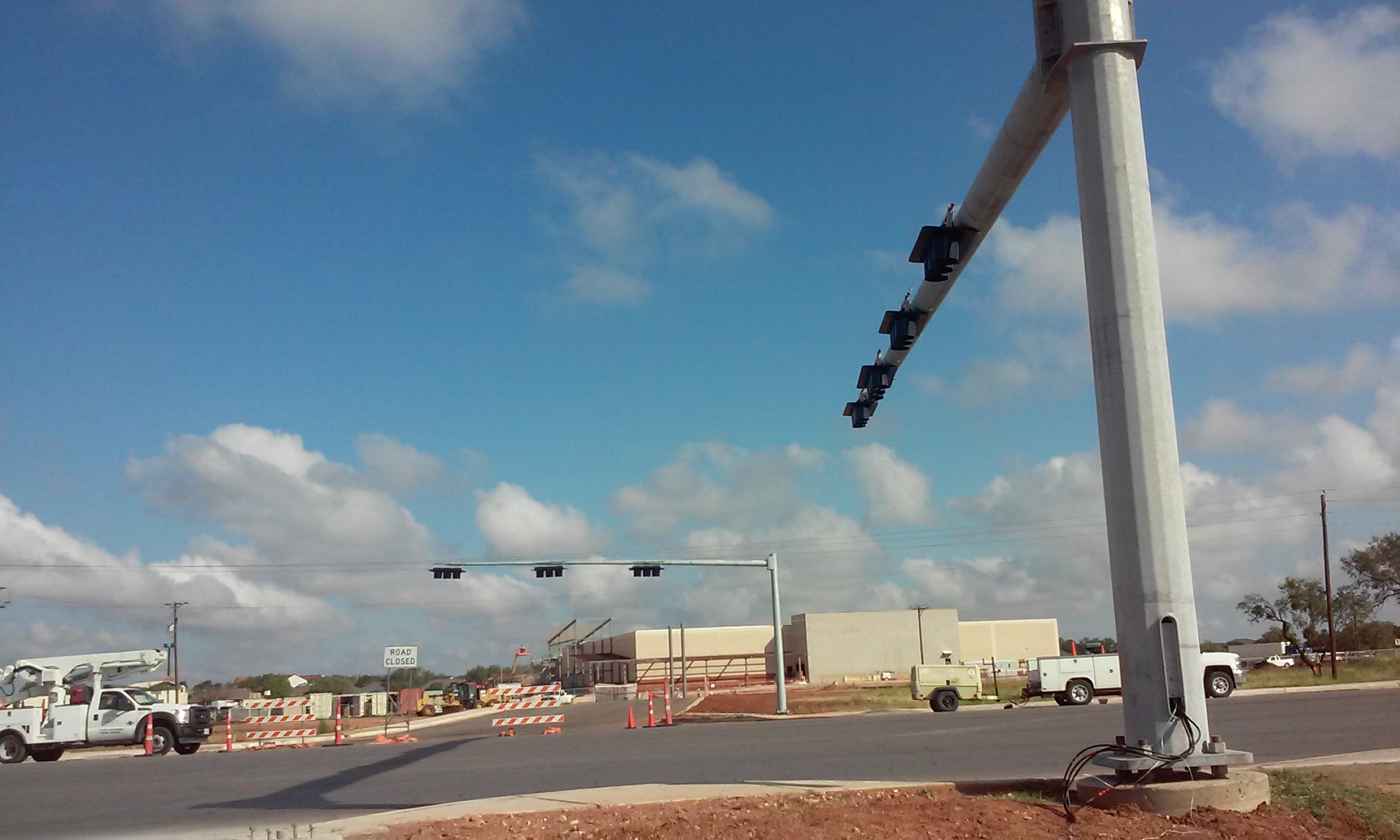 SAN ANGELO, TX – Traffic light poles are now up on Sherwood Way between Wal-Mart and the new H-E-B.