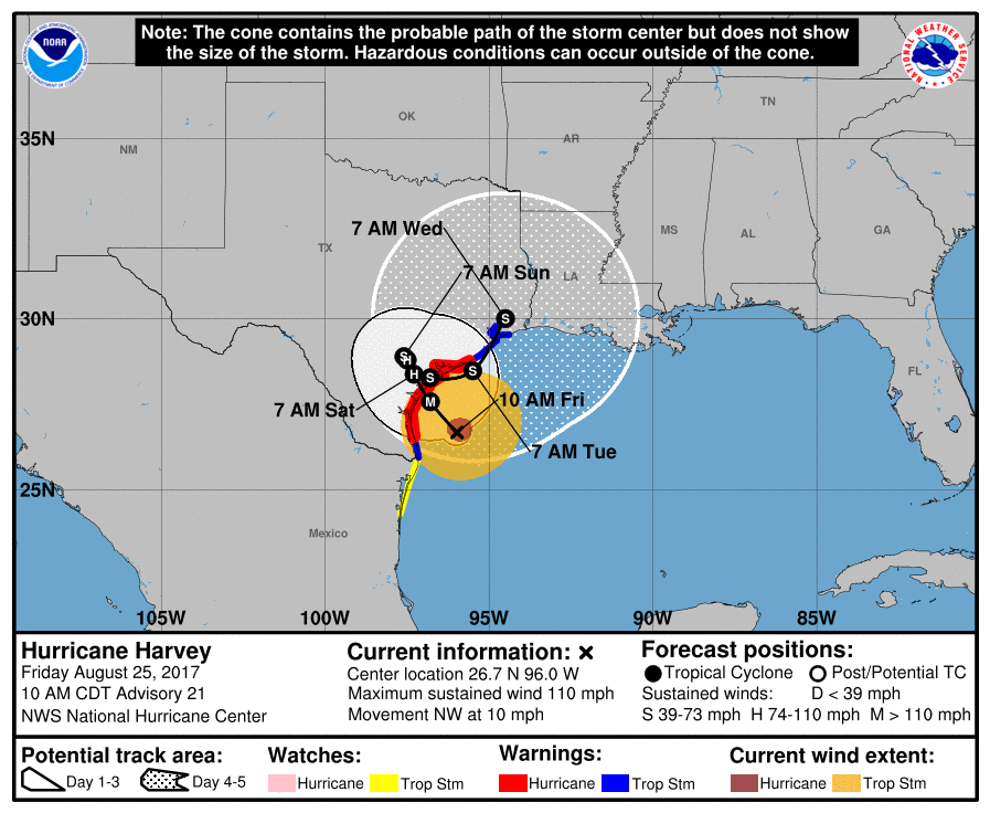 Most tracks keep Harvey along the Texas Gulf Coast and eventually tracking east.