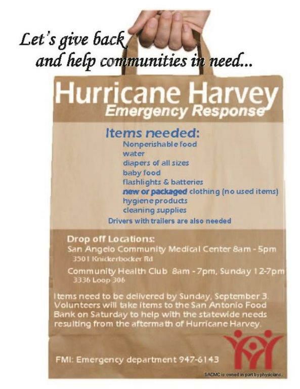 SAN ANGELO, TX -- San Angelo Community Medical Center is collecting donations for hurricane relief through Sunday.