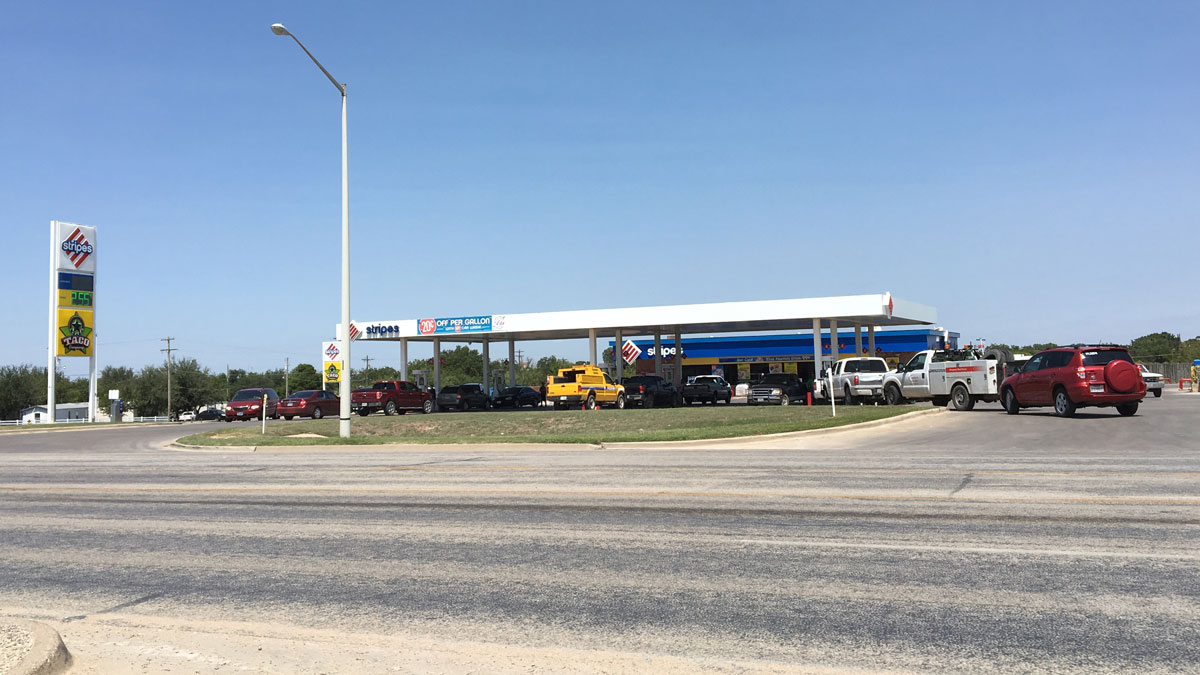 Above: The gas station on Goodfellow AFB is seeing lines form on Aug. 31, 2017. (LIVE! Photo/Joe Hyde)