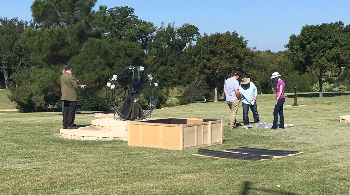 The 16 outdoor sculptures are part of what Howard Taylor refers to as a triumvirate that also includes the National Ceramic Competition, and En Plein Air Texas - the largest sale of its kind in the nation. Sculptors apply for the contest for their artwork to be judged and chosen for display. This year there are 11 new installations and 5 current installations are staying. "They should be complete by this evening," Laura Huckaby states, the administrator of the display. This group of artwork will be on display for two years, and new applications will begin coming in July or August of 2019.