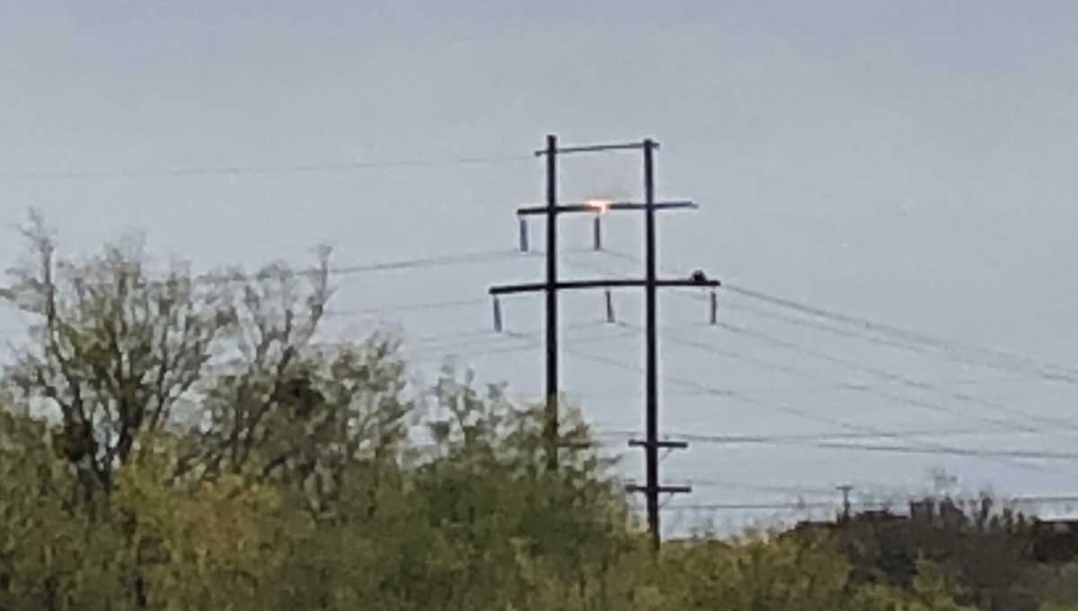 Hernandez said AEP had 6,051 customers without power, but power is being restored to some customers now. Near Kansas Ave. and YMCA Dr. on the southwest side, we observed fire department personnel responding to a fire on a power line. Flames could be seen atop a transmission line at a power line there just before 3 p.m.