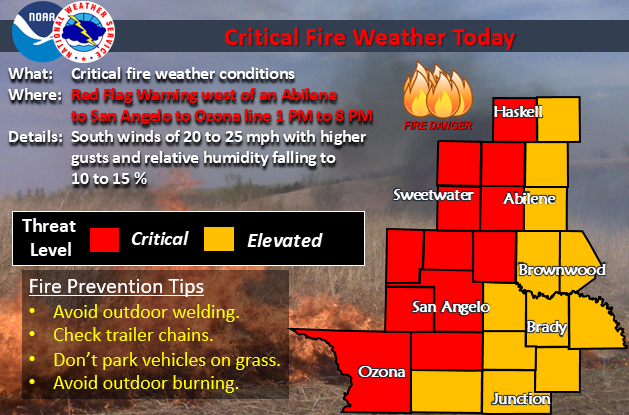 SAN ANGELO, TX — A Red Flag Warning has been issued for the San Angelo area for critical fire weather conditions.