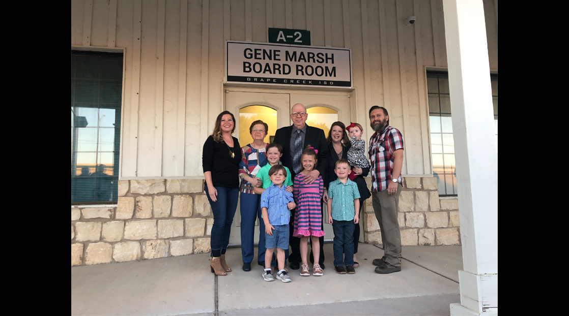 SAN ANGELO, TX – Grape Creek ISD unveiled a special dedication of their district board room to former GCISD board member Gene Marsh. Mr. Marsh was a member of the school board for 17 years serving, most of the time as president of the board.