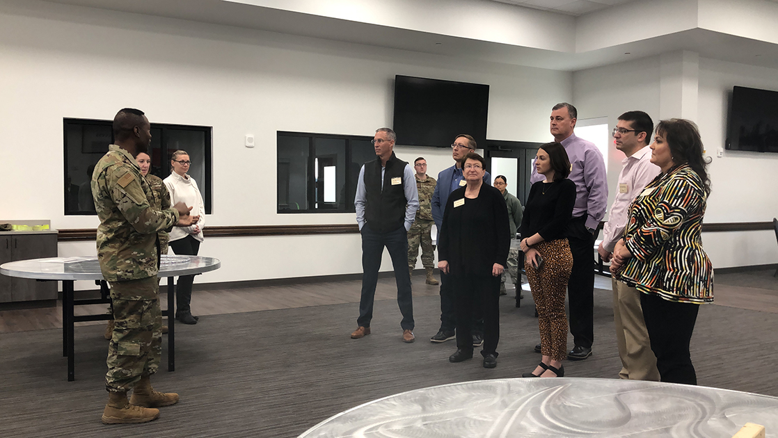 While visiting the newly inaugurated Cressman Dining Facility, community partners had the opportunity to experience the Airman Success Model, which allows the airmen training at Goodfellow to grow their critical thinking skills and self-awareness.