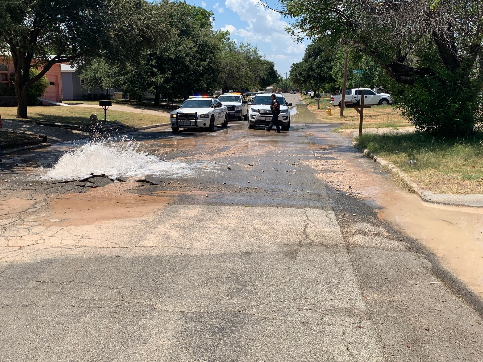 SAN ANGELO, TX – San Angelo water utility crews are working on at least four major breaks across the city Friday evening. Water was bubbling up under the pavement on College Hills Blvd. near Ave. N. before 4 p.m.