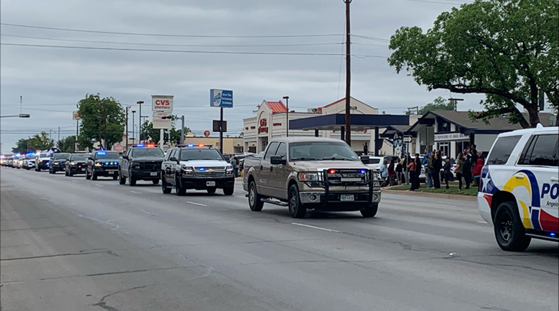 The remains of Sgt. Jones were transported from Lubbock where his autopsy was performed. Along the way, first responders lined the roadway to salute the fallen deputy as the procession passed their communities.