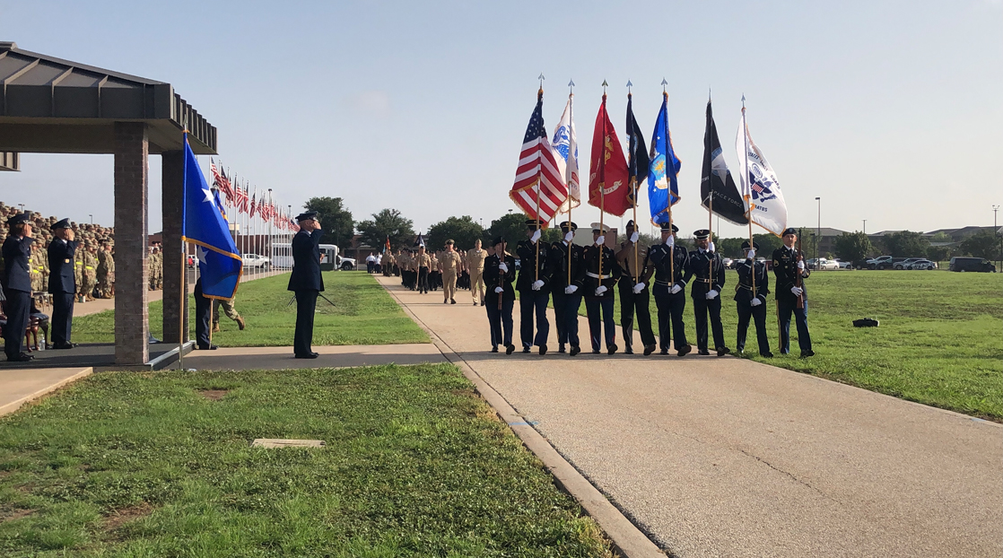Colonel Reilman also addressed the crowd as the new commander where he took the time to thank his predecessor, his family, and all the servicemen and women that are part of Goodfellow. With the conclusion of his remarks, the Pass in Review kicked off as servicemembers of each branch saluted the new commander.