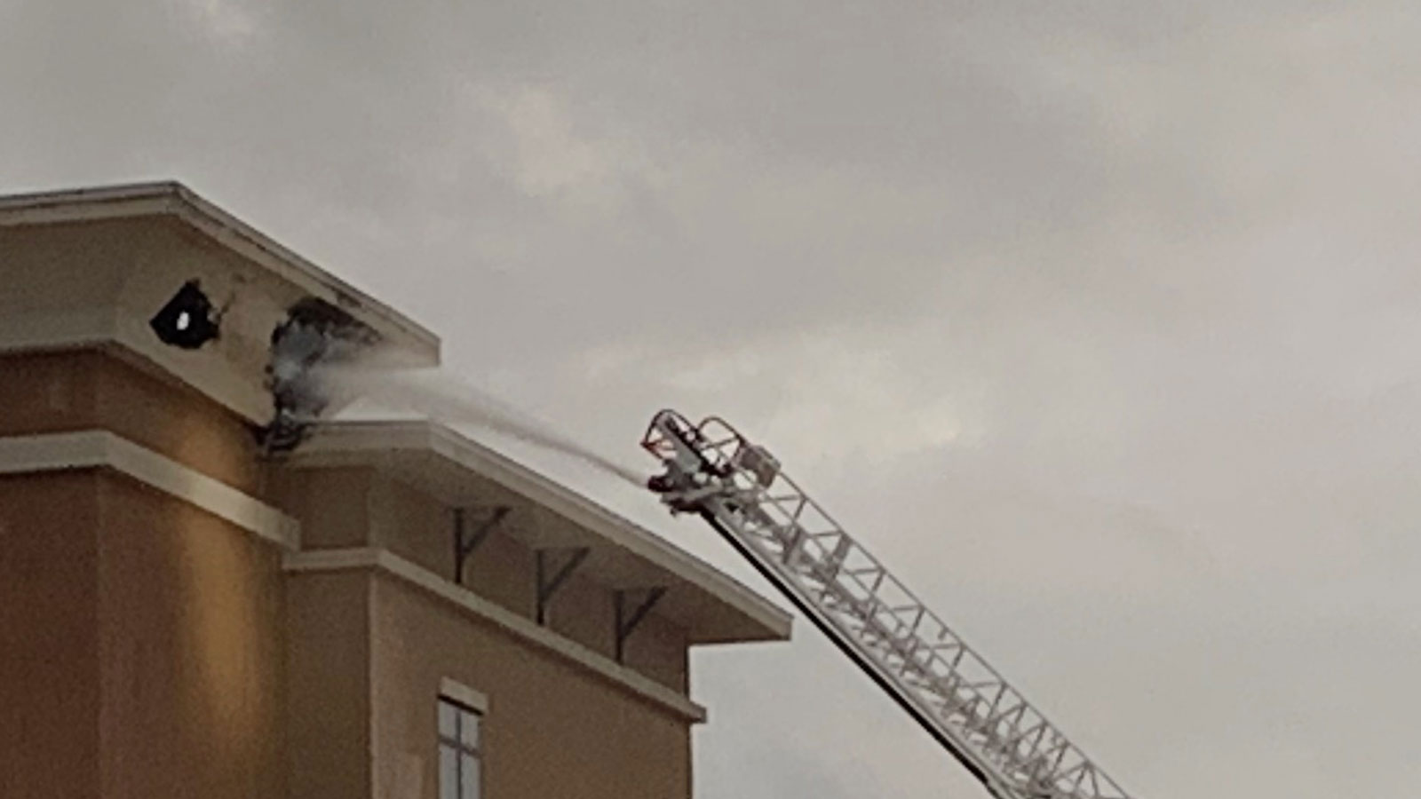Accordingly, firefighters spend a great deal of time dousing the area of the lightning strike with water to cool the surfaces down. The strike happened at around 8 a.m. Hotel guests were allowed back onto the hotel just before 9. No injuries were observed.