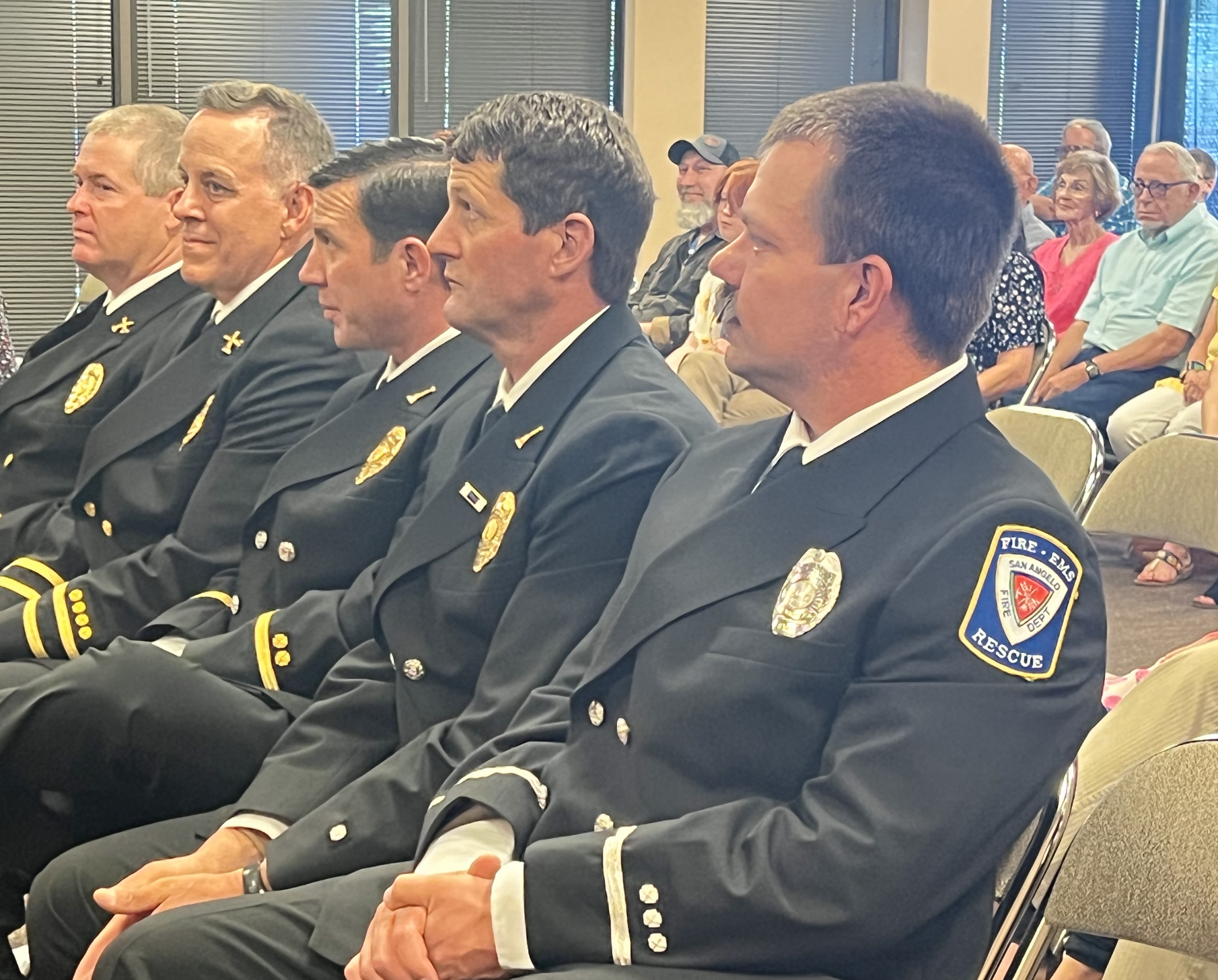 During the celebration John Sanchez and Joshua Rowe were promoted to driver, Aaron Fritze and Jason Strube were promoted to Lieutenant, Andrew McElroy and Daniel Bowling were promoted to Captain, and Michael Anderson was promoted to Battalion Chief.