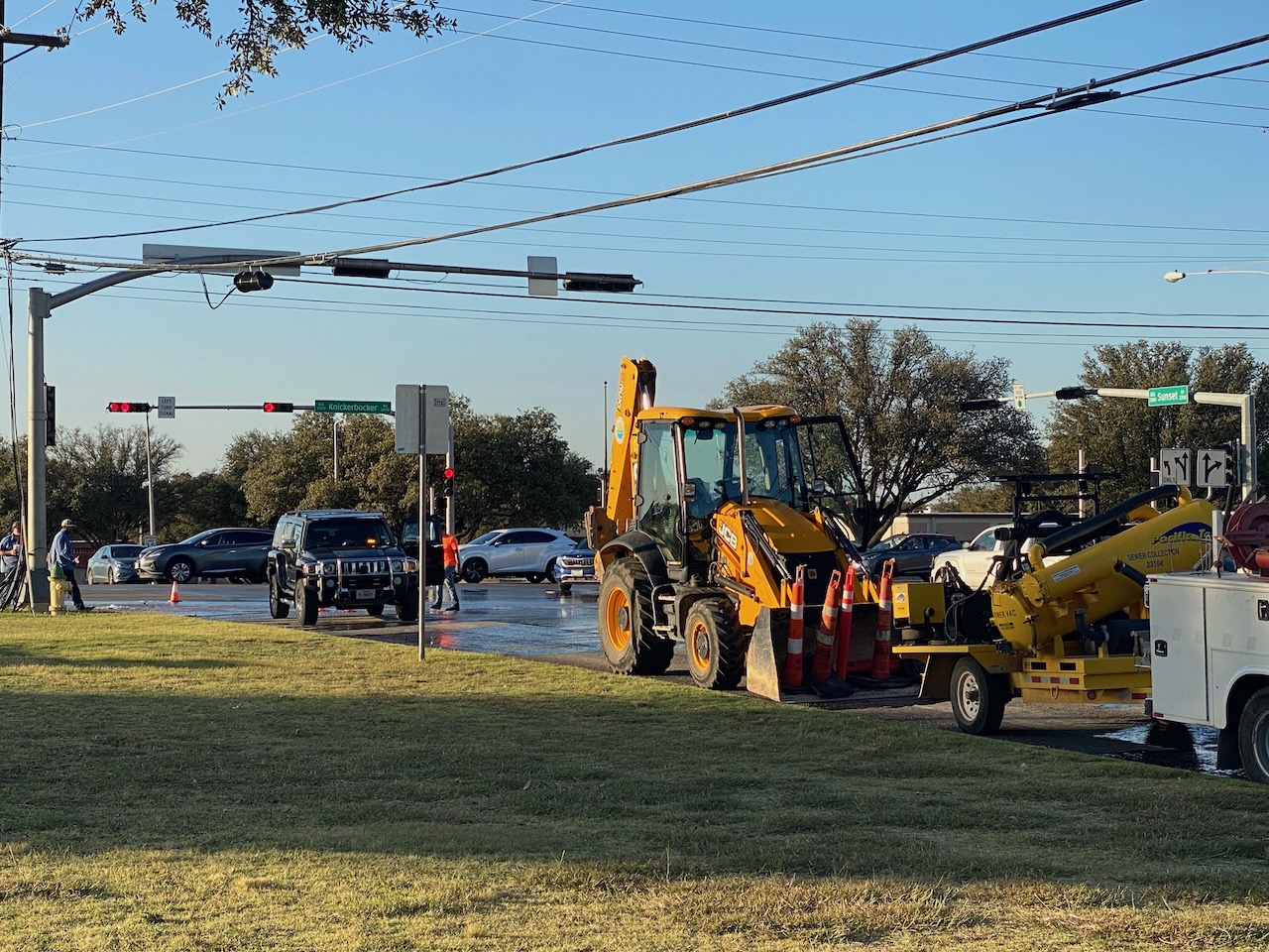 SAN ANGELO, TX — Laying fiber optic cable comes with some risk as seen early this evening at the corner of Sunset and Knickerbocker.