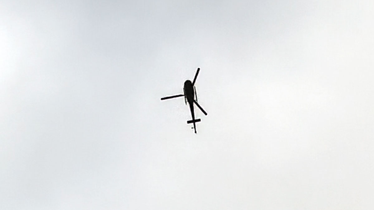 The helicopter was witnessed hovering around various locations Friday night from around 9:30 p.m. until 10:30 p.m. It reappeared Saturday afternoon. We spotted it over the Bentwood Country Club Estates a few moments ago.