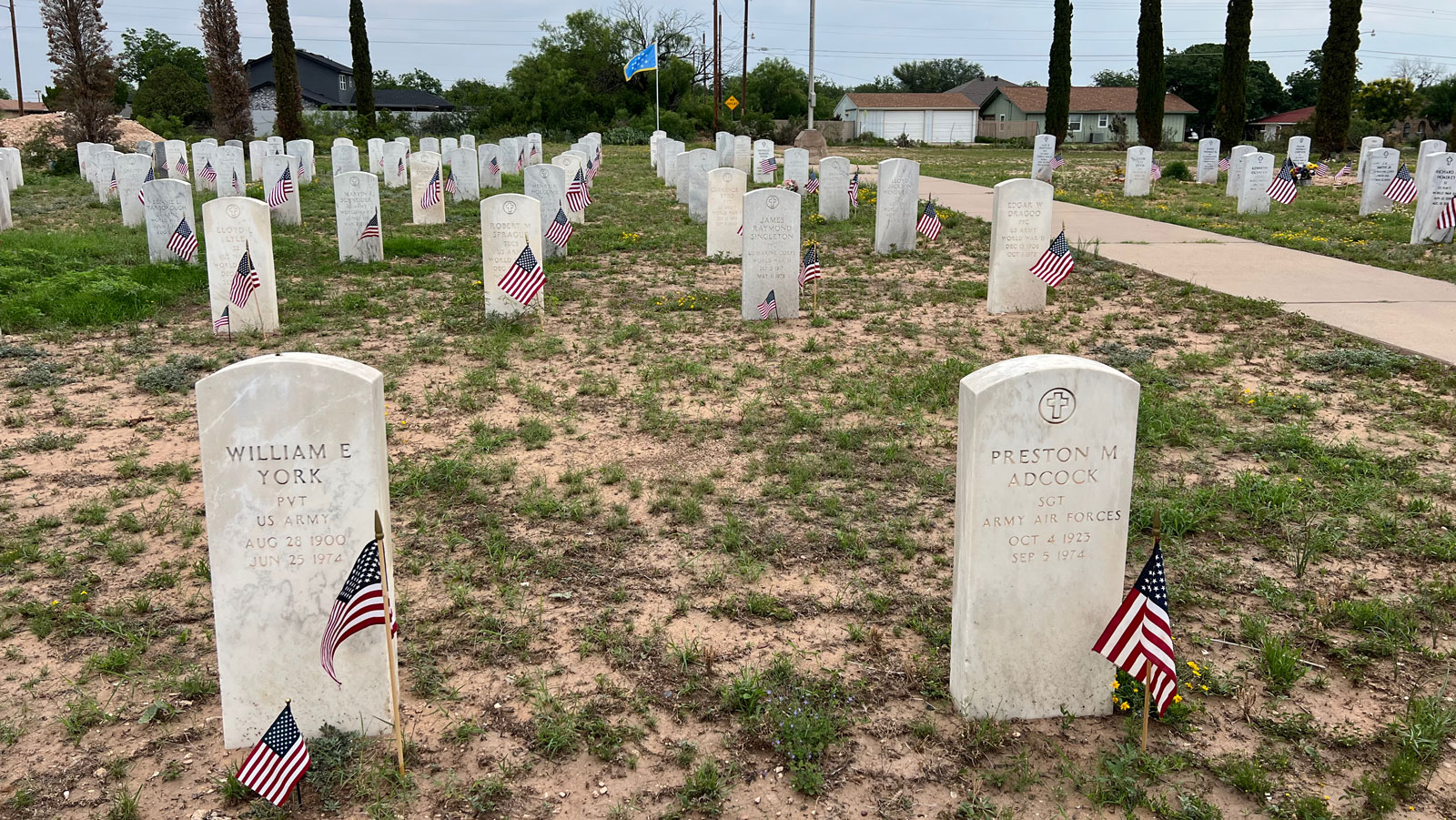 The All Veterans Council of San Angelo organized a similar flag placement ceremony at Johnson’s Lawnhaven Memorial Gardens, 4989 FM Highway 1223. At that cemetery, most veterans are laid to rest in a separate veteran’s area.