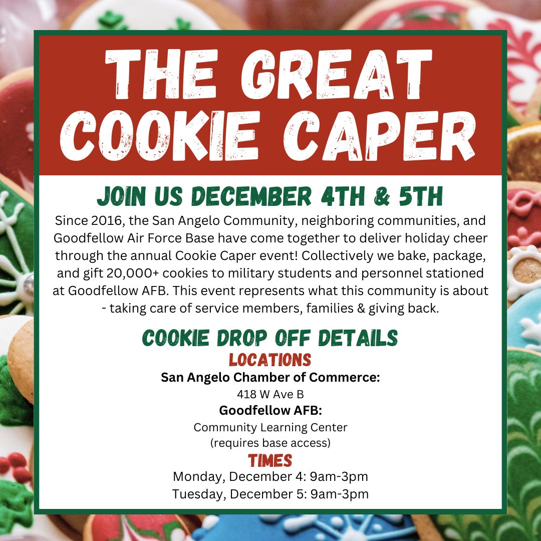 Since its inception in 2016, residents of San Angelo and neighboring communities join forces to bake, package, and distribute over 20,000 cookies to military students and personnel stationed at Goodfellow AFB.