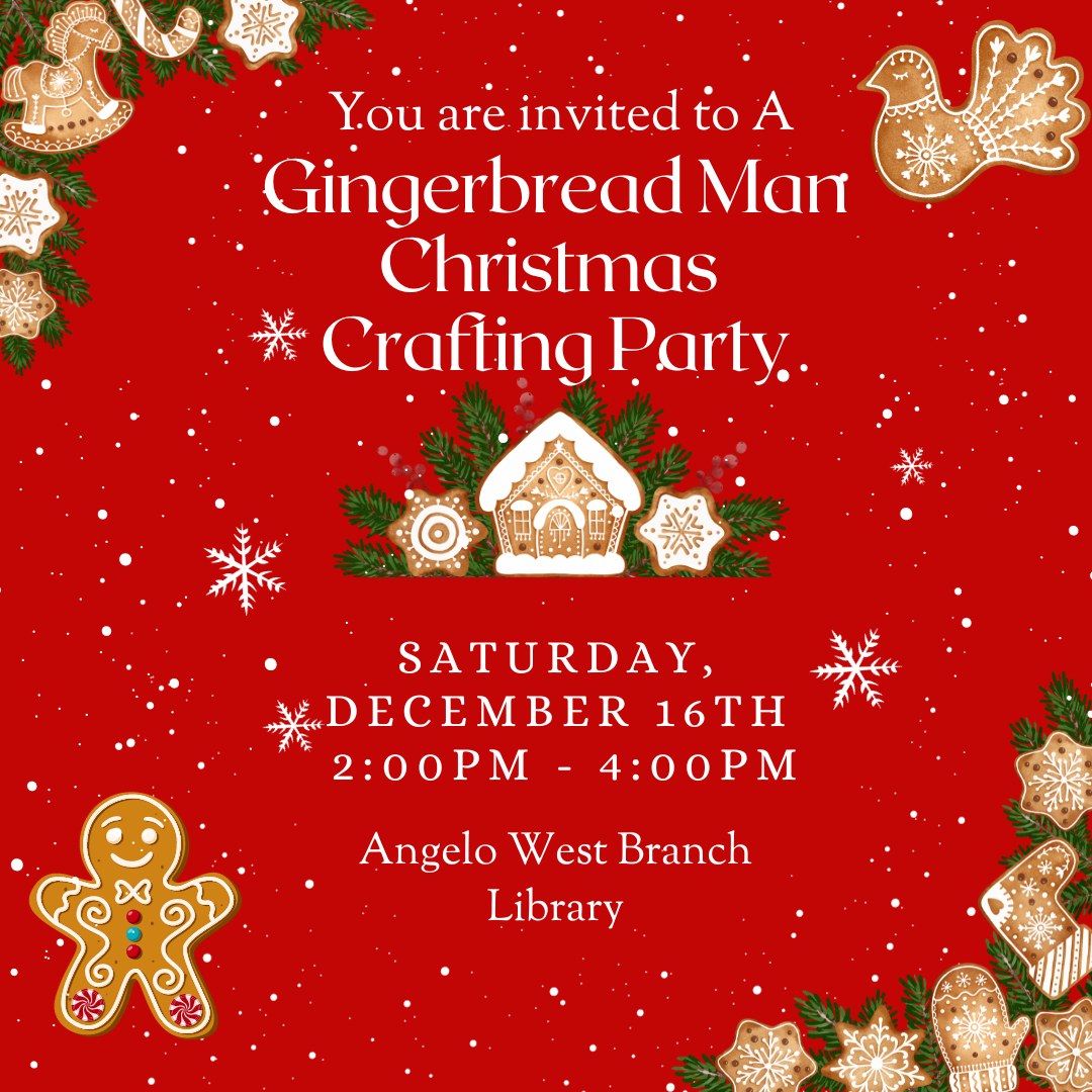 SAN ANGELO, TX - Join the Angelo West Branch Library for special gingerbread crafts, games, and house decorating.
