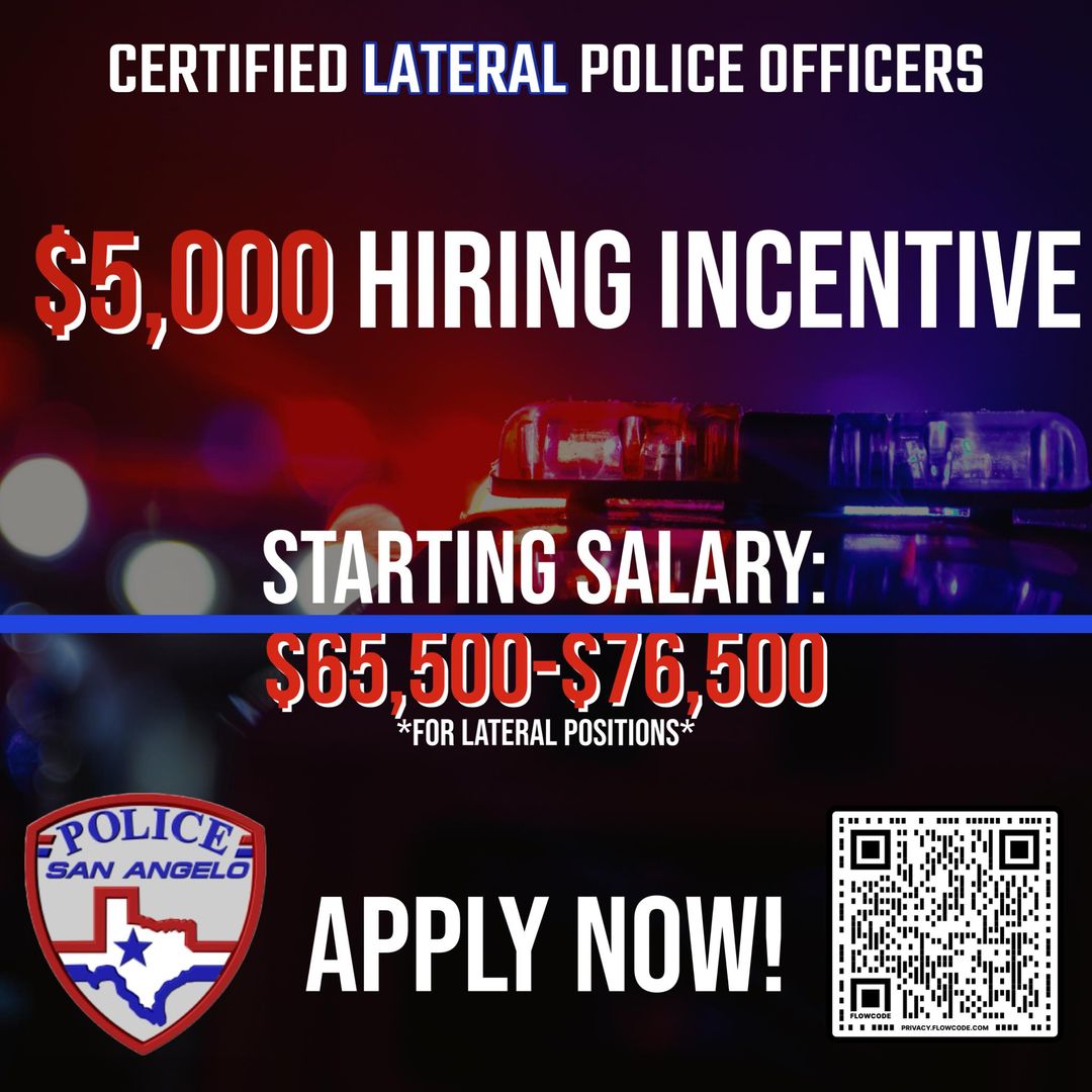 SAN ANGELO, TX - The San Angelo Police Department is offering prospective candidates a $5,000 hiring incentive for Lateral Police Officer positions.