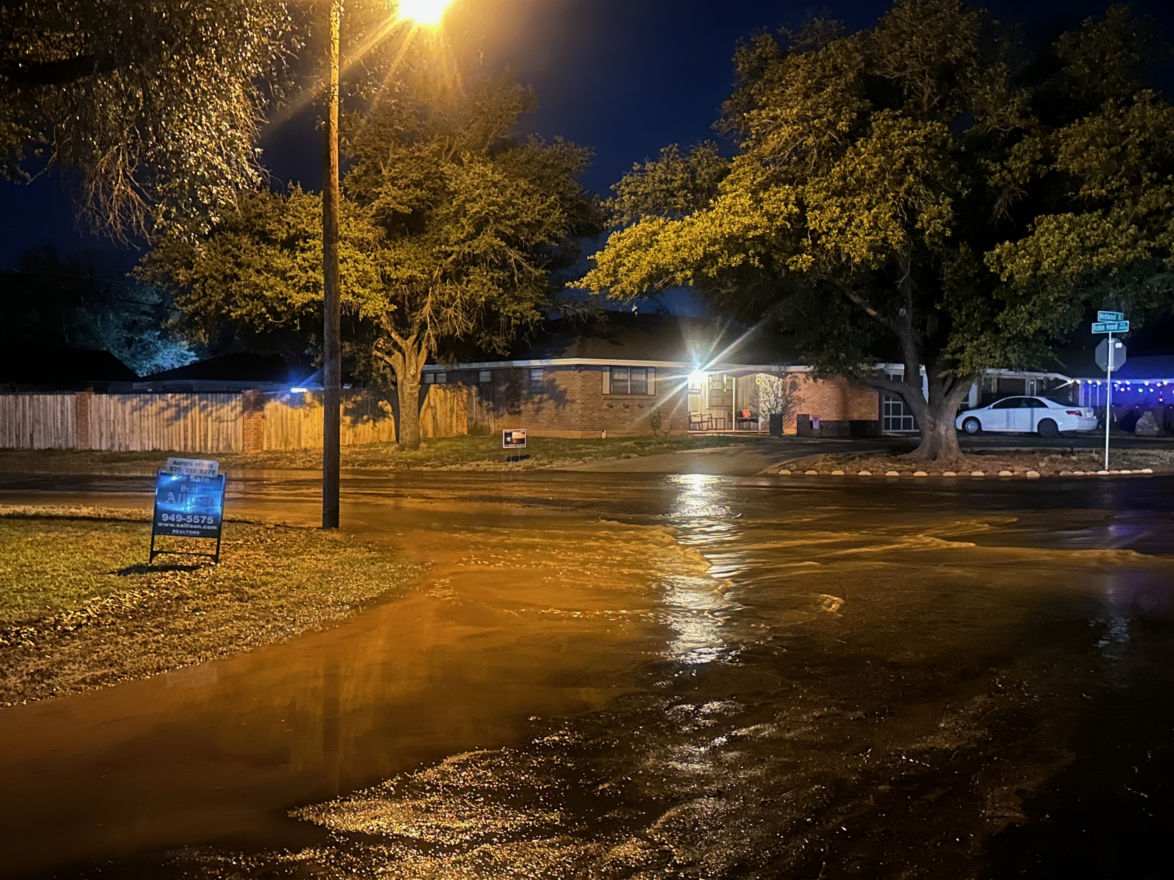 SAN ANGELO, TX — A street in San Angelo is turning into a crees from Robin Hood Tr. and Westbrook to Glenna and Arden Rd. Just north of Sherwood Way on San Angelo’s west side. Water in some places is up to the curb.