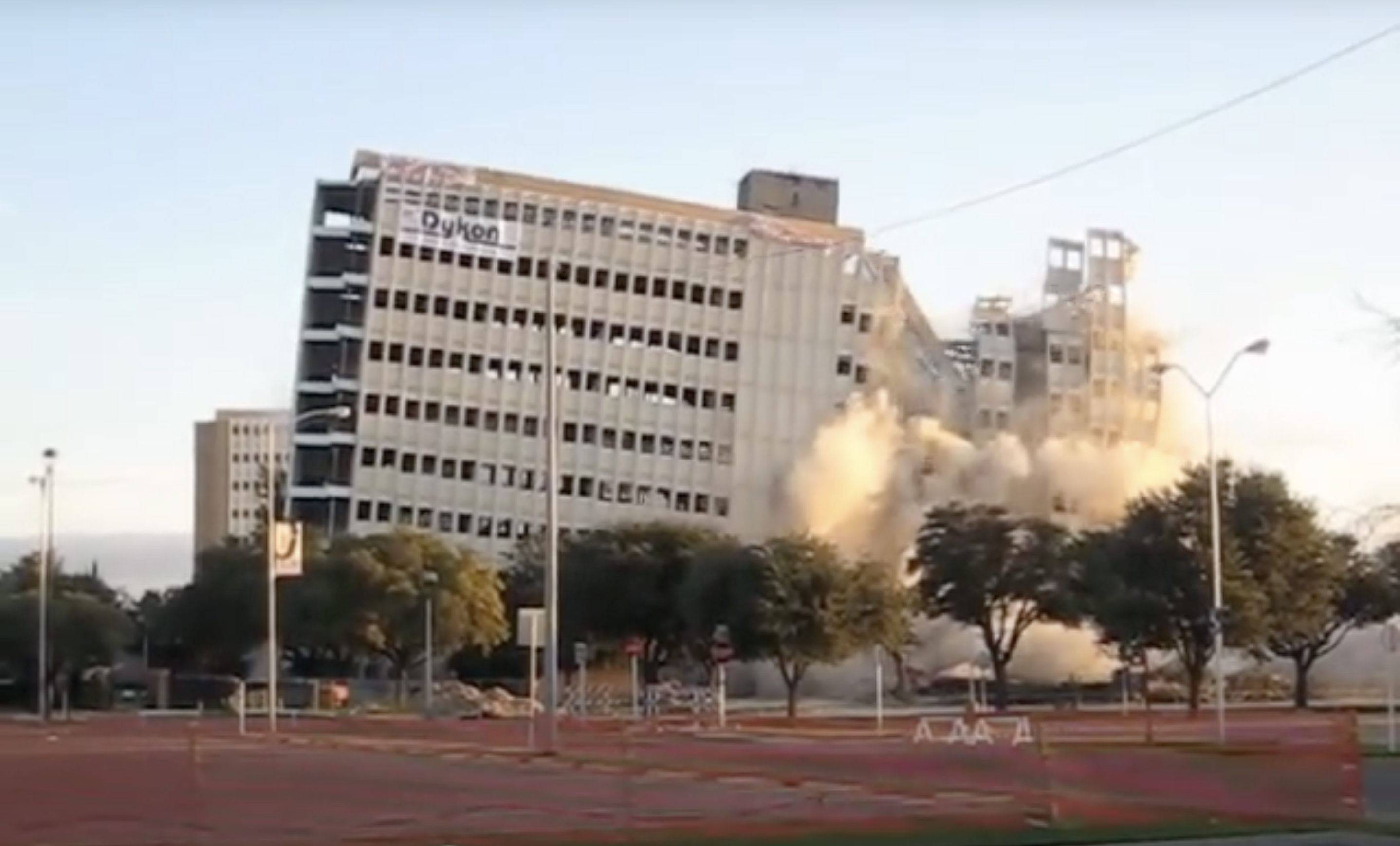 Footage of the high-rise dorm at Angelo State University in San Angelo, Texas, being imploded.