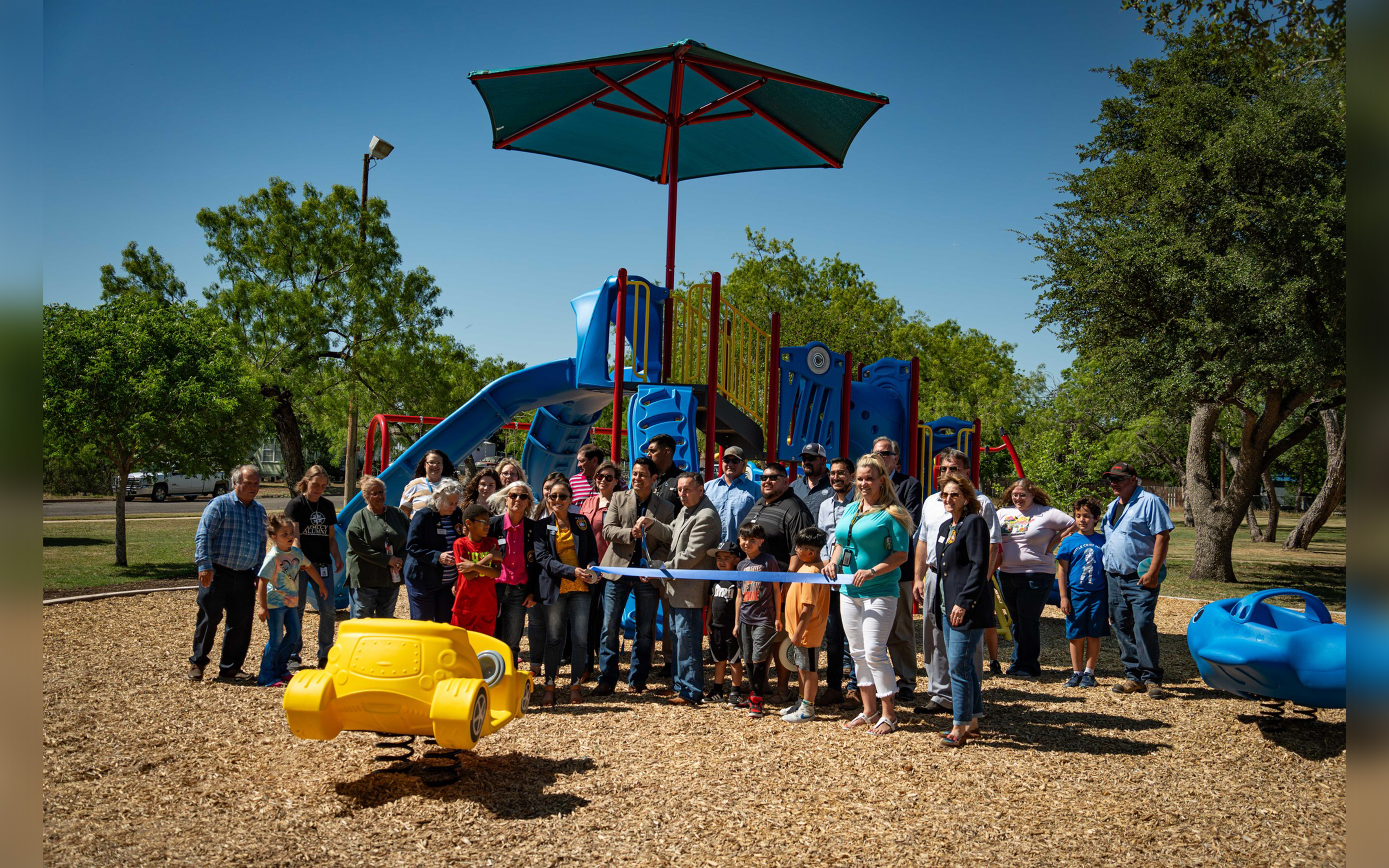 SAN ANGELO, TX - The new playground equipment has been installed in Bell Park, and city officials celebrated Monday with a ribbon cutting.