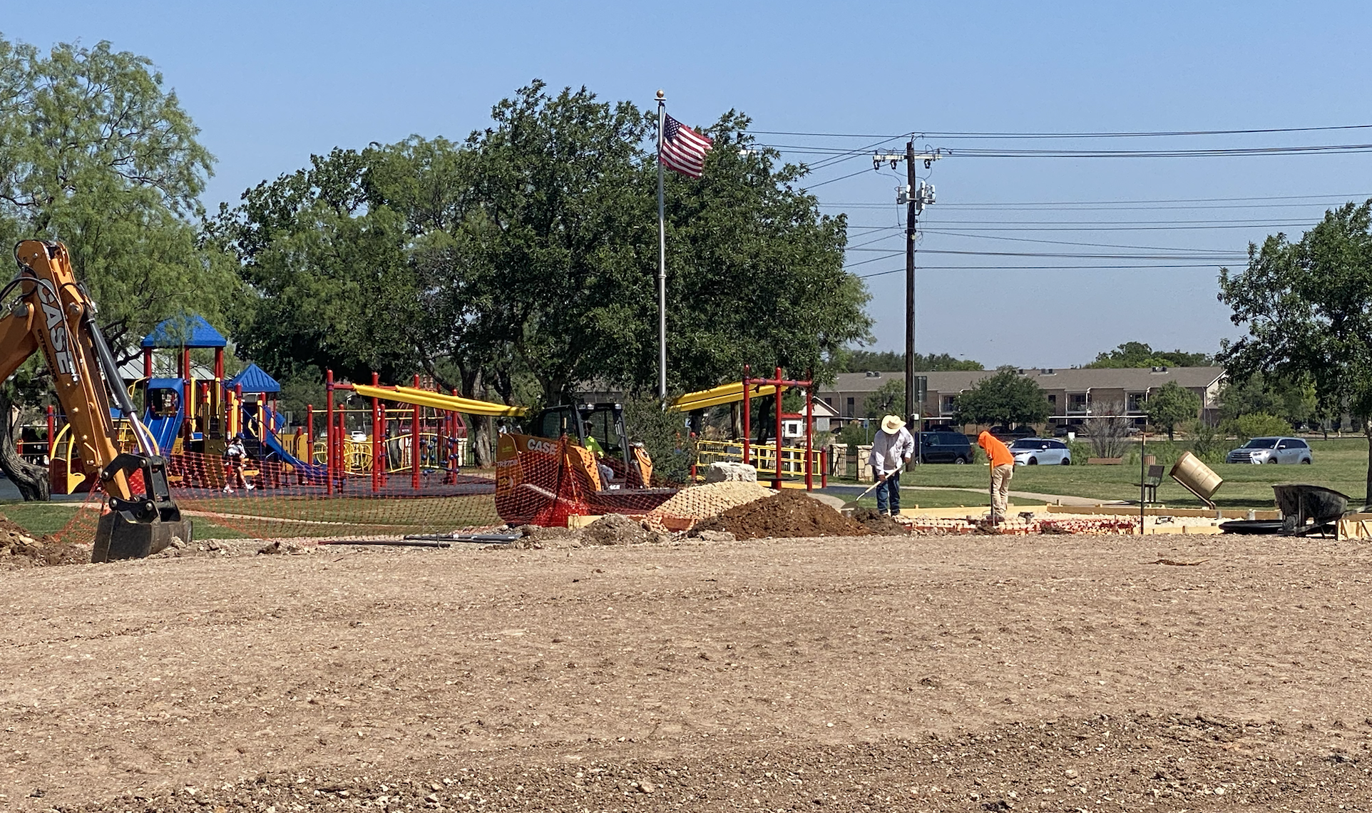 Construction crews were seen at Unidad Park hard at work on the splash pad.