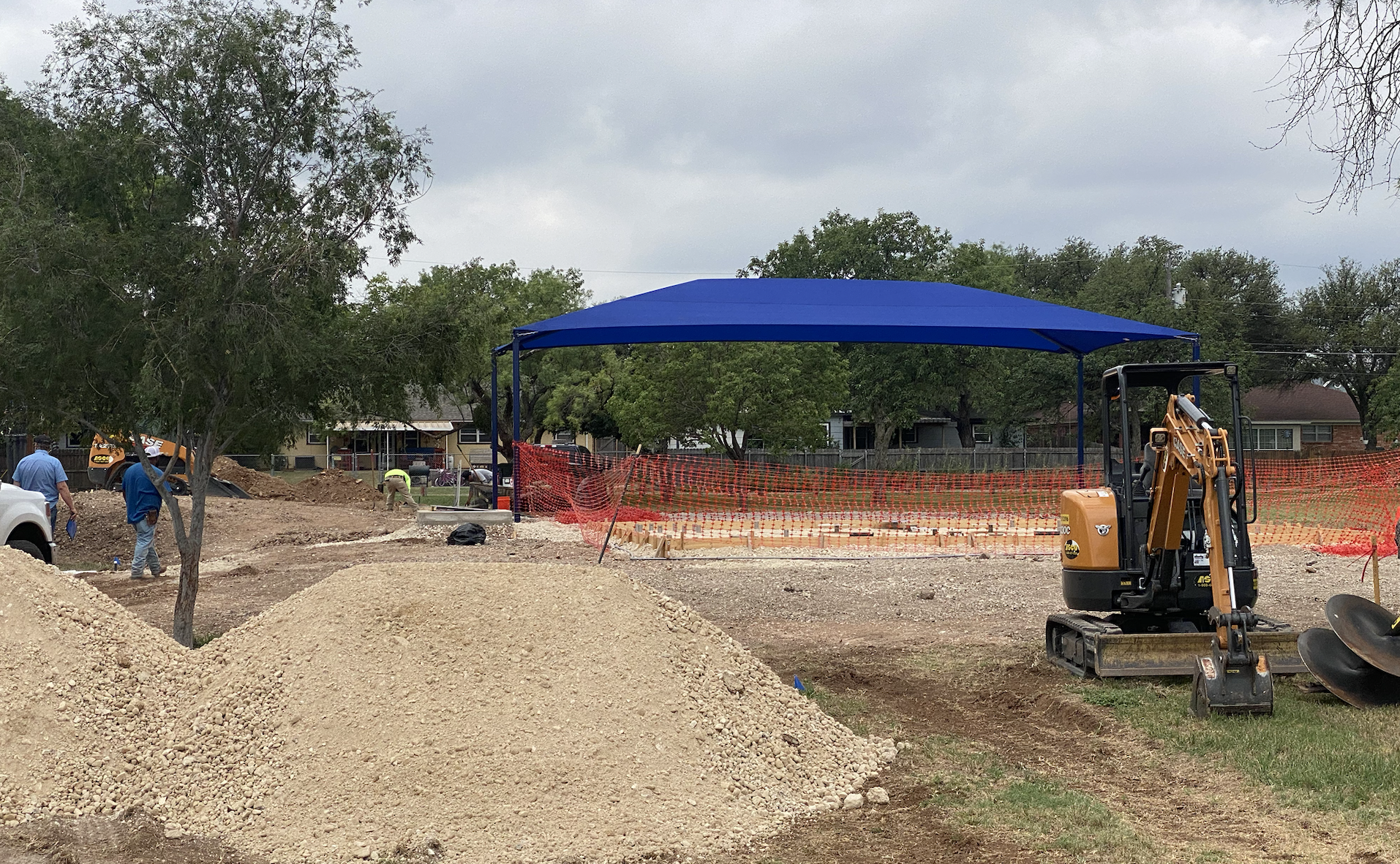 But no, the splash pad crews have been hard at work getting pipe in the ground and a big canopy covering up already. There is still concrete work to be done but things are happening fast.