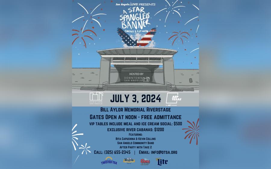 SAN ANGELO, TX - Downtown San Angelo, Inc. and San Angelo LIVE! are thrilled to announce the highly anticipated Star-Spangled Banner Concert & Fireworks event at the Bill Aylor Memorial River Stage today starting at 6:30 p.m.