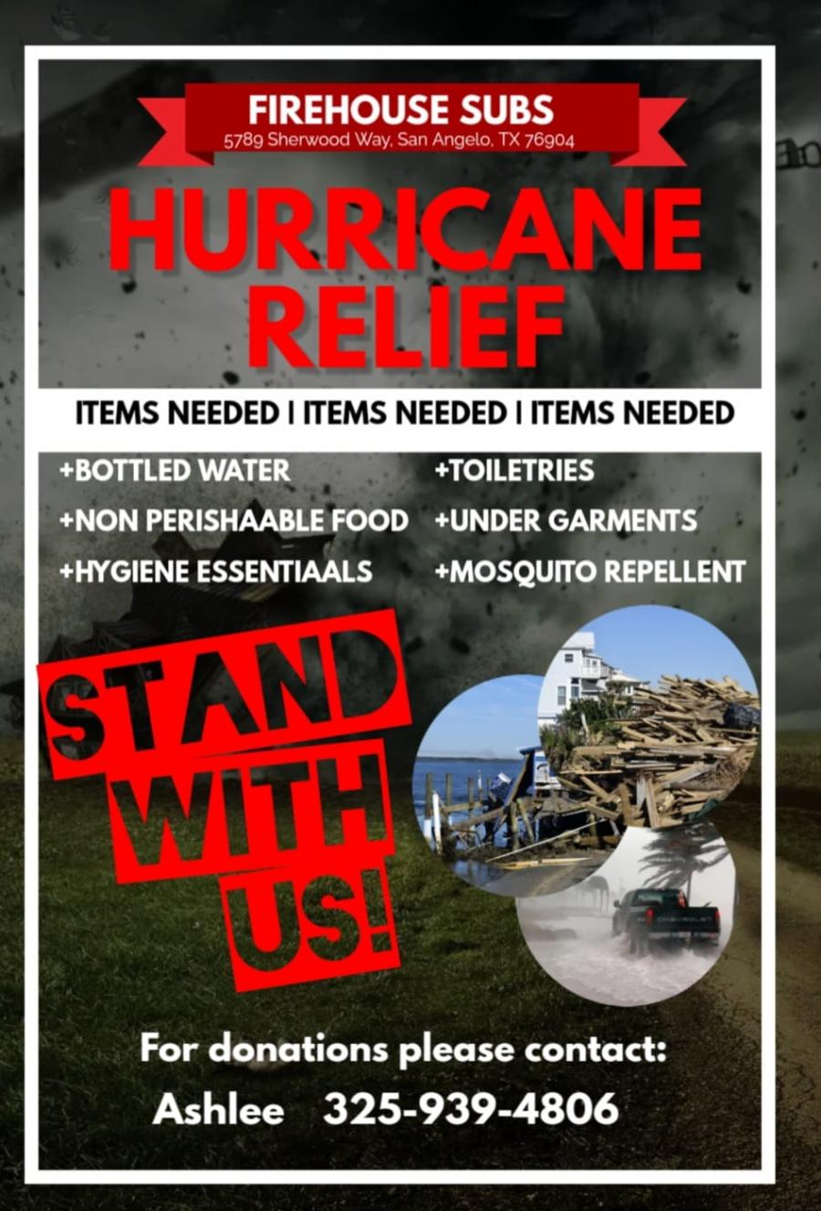 A local restaurant is also helping with the effort. Ashlee Long, a manager at Firehouse Subs, is accepting donations to take to Houston on Wednesday night.