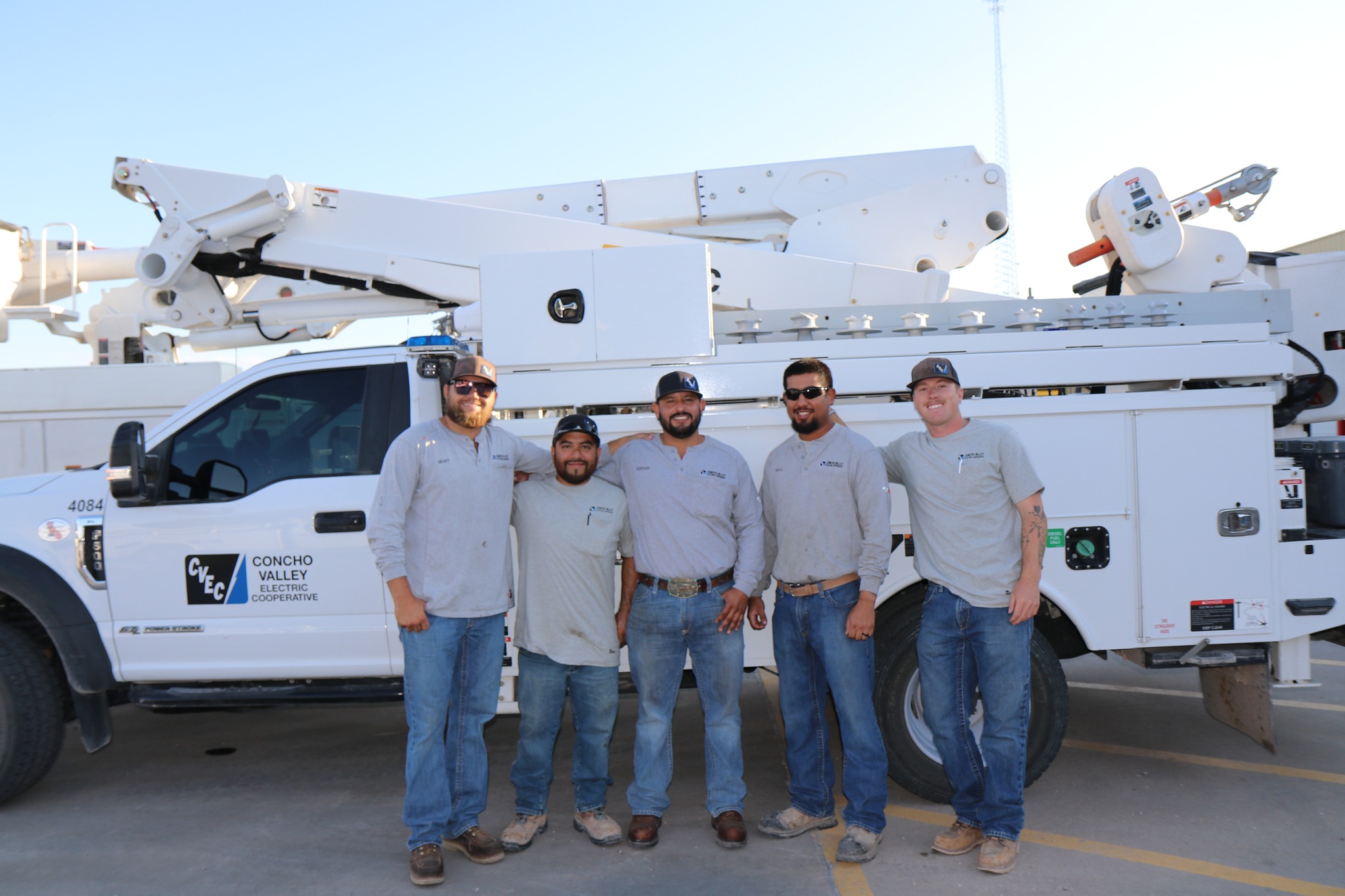 The crew of Newt Kitchens, Arian Gutierrez, Adrian Herrera, Raul Rivera and Levi Scott could be gone for up to a week, said Staci Walter, a manager with Concho Valley Electric Co-op.
