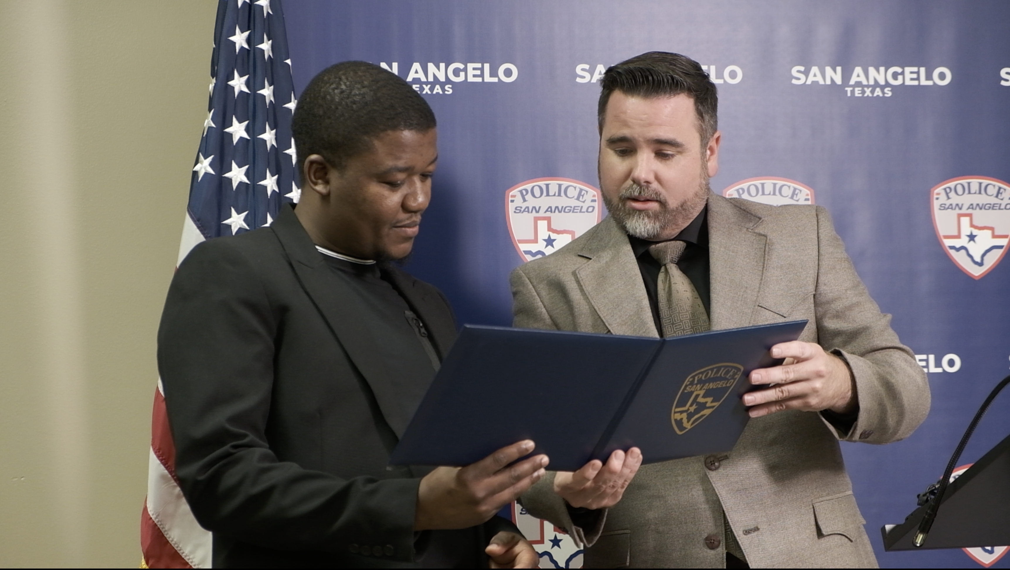 Chief Travis Griffith of the San Angelo Police Department honored Thomas Ndlovu, a nurse at Shannon Hospital, during a press conference on Tuesday for saving two children from a burning apartment on September 14.