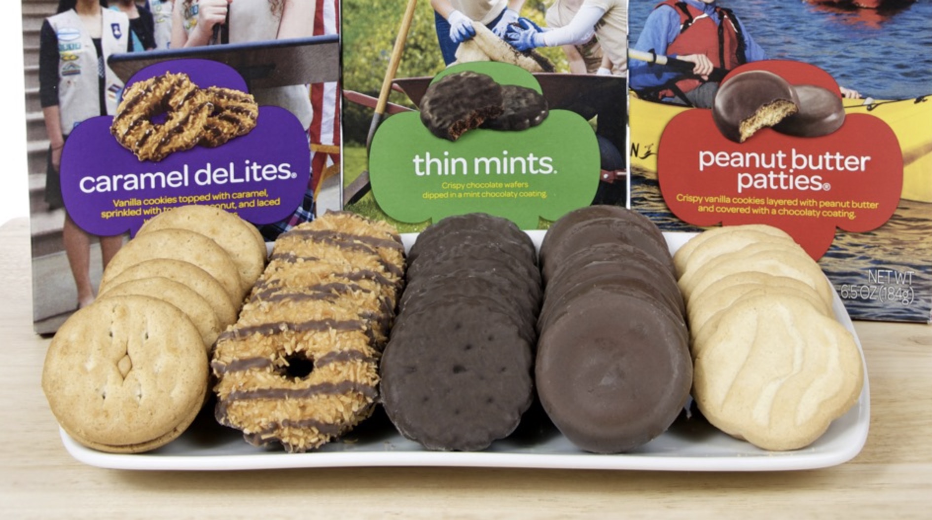This year’s cookie lineup includes Thin Mints, Toffee-tastic, Trefoils, Lemonades, Lemon-Ups, Peanut Butter Patties/Tagalongs, Peanut Butter Sandwich/Do-si-dos, Caramel deLites/Samoas, Caramel Chocolate Chip and Adventurefuls.