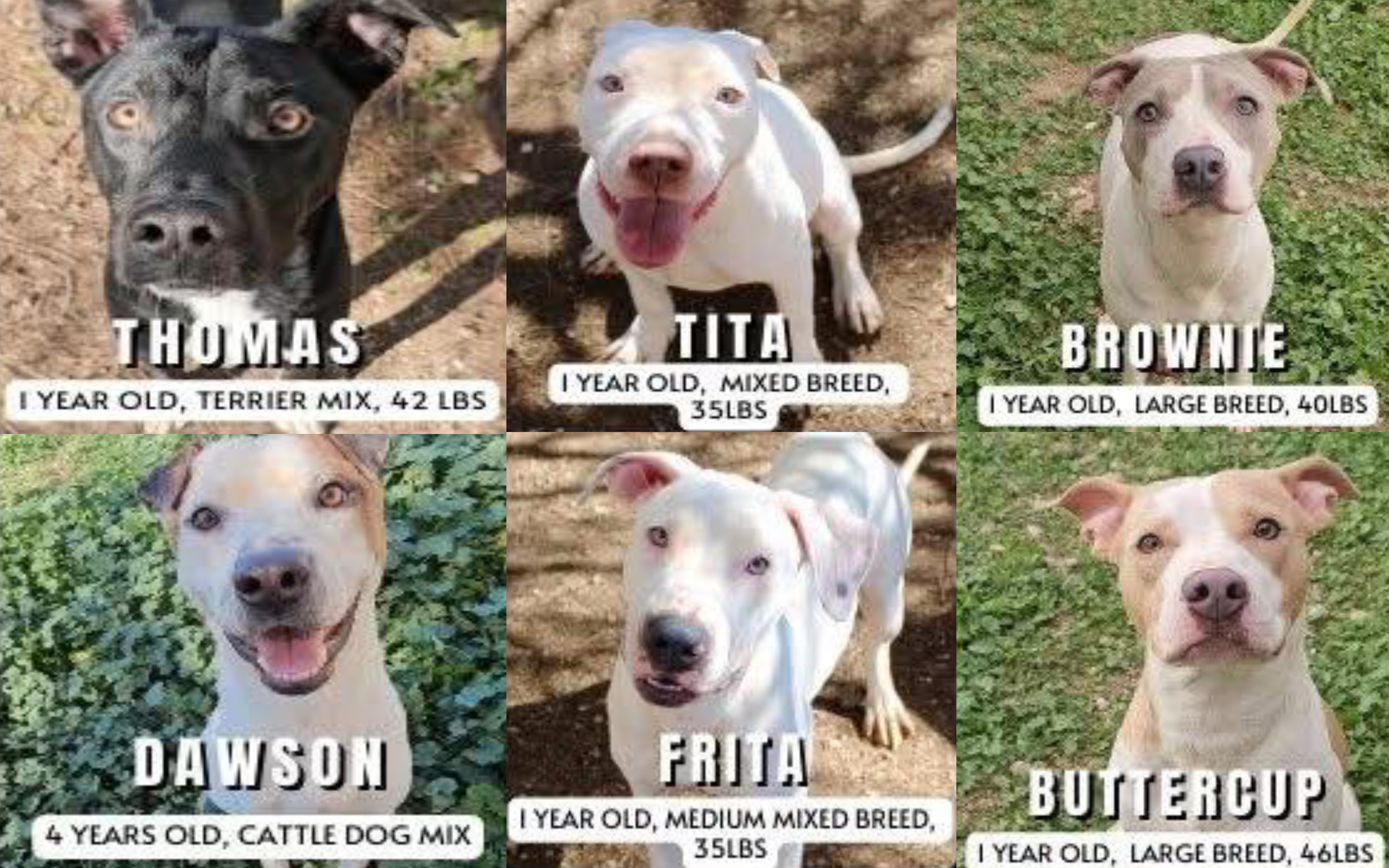 Adoptions for these dogs are free and include spay/neuter procedures, vaccines, and microchips.