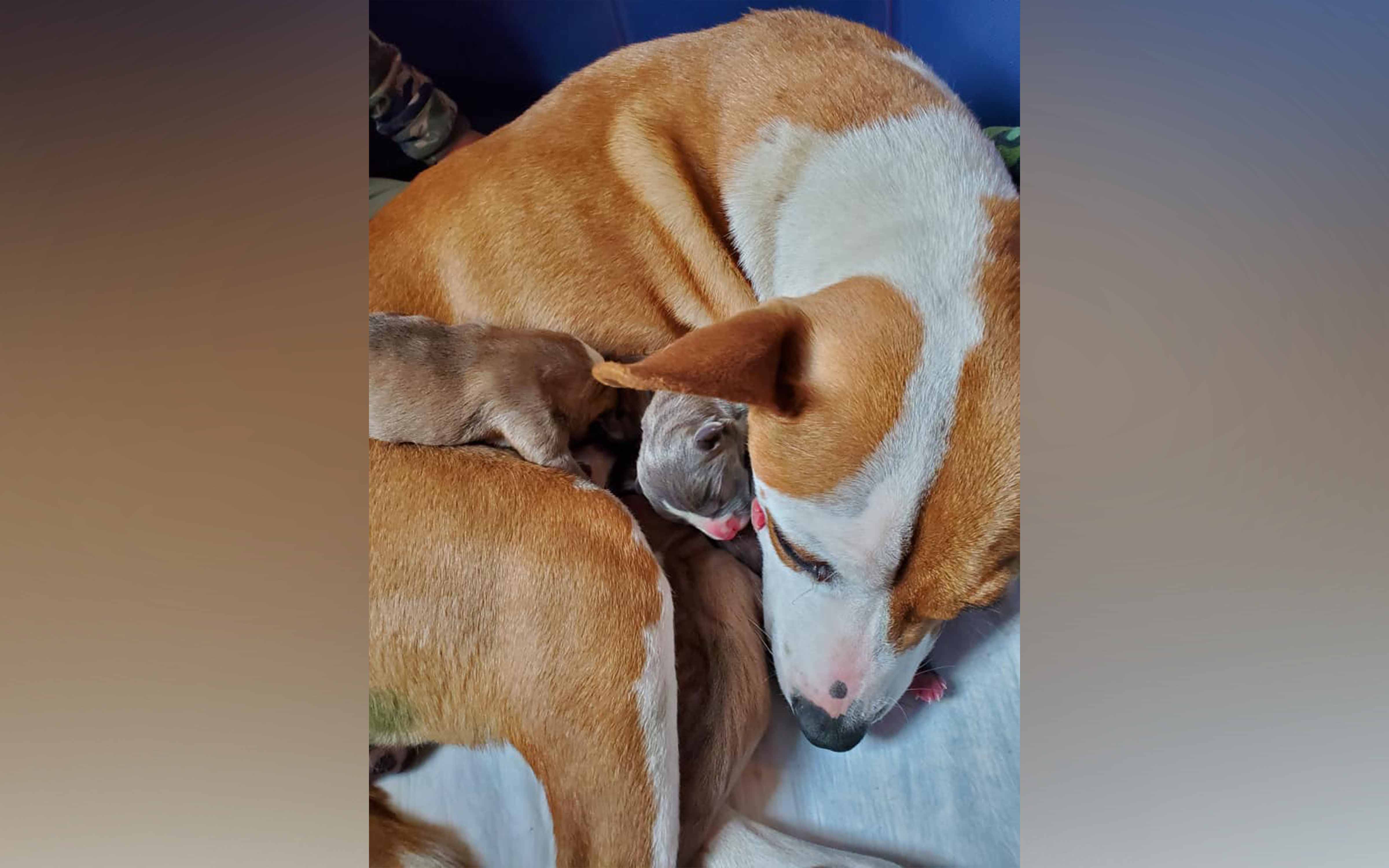 Despite the complications, every puppy survived, and Sweetie is thriving in foster care.