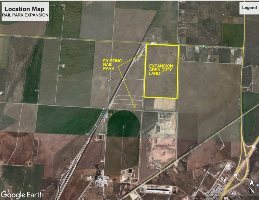 City Council will consider authorizing the San Angelo Development Corporation (COSADC) to purchase approximately 252 acres of city-owned land east of the existing South Plains Lamesa Railroad (SPLRR) yard and resell it to SPLRR for $1 million.