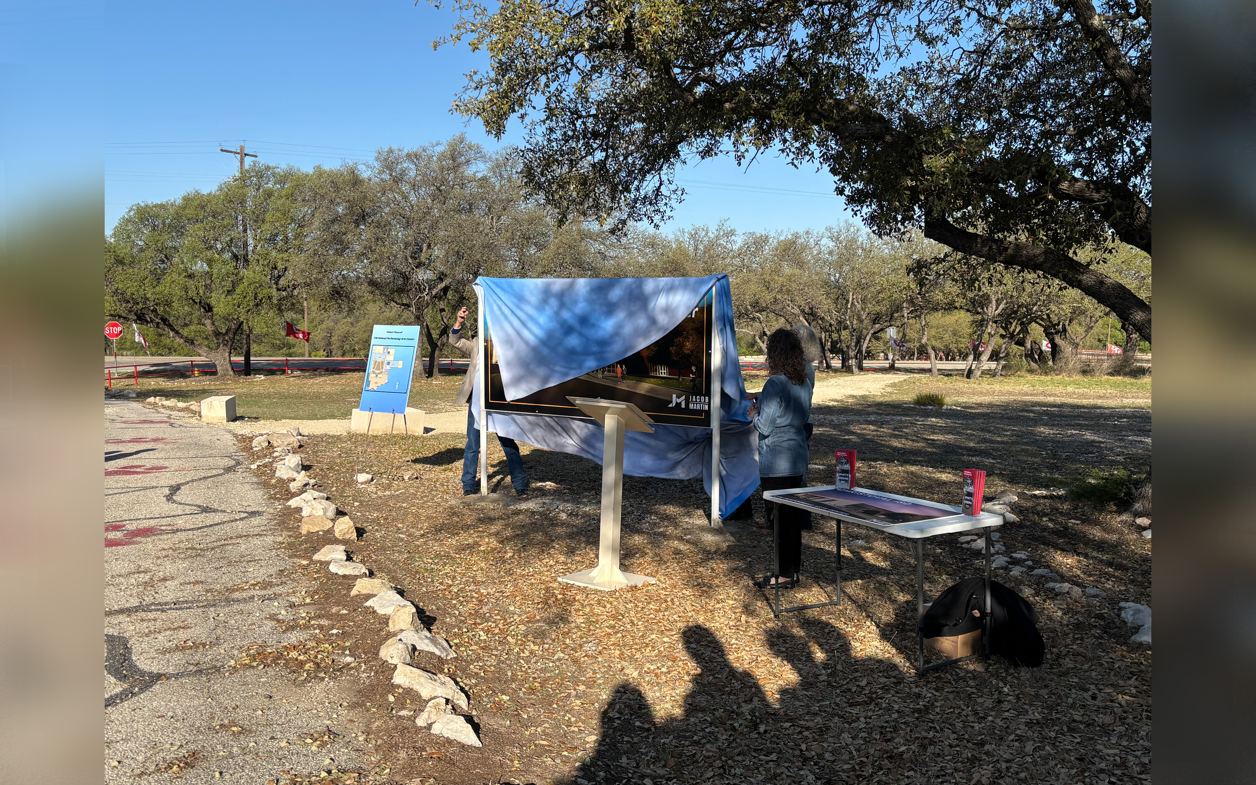 CHRISTOVAL, TX — A sign marking the location of the future Christoval Performing Arts Center was unveiled Tuesday morning by the CTX Performing Arts Center Committee, a group of Christoval community members organized under the San Angelo Area Foundation.