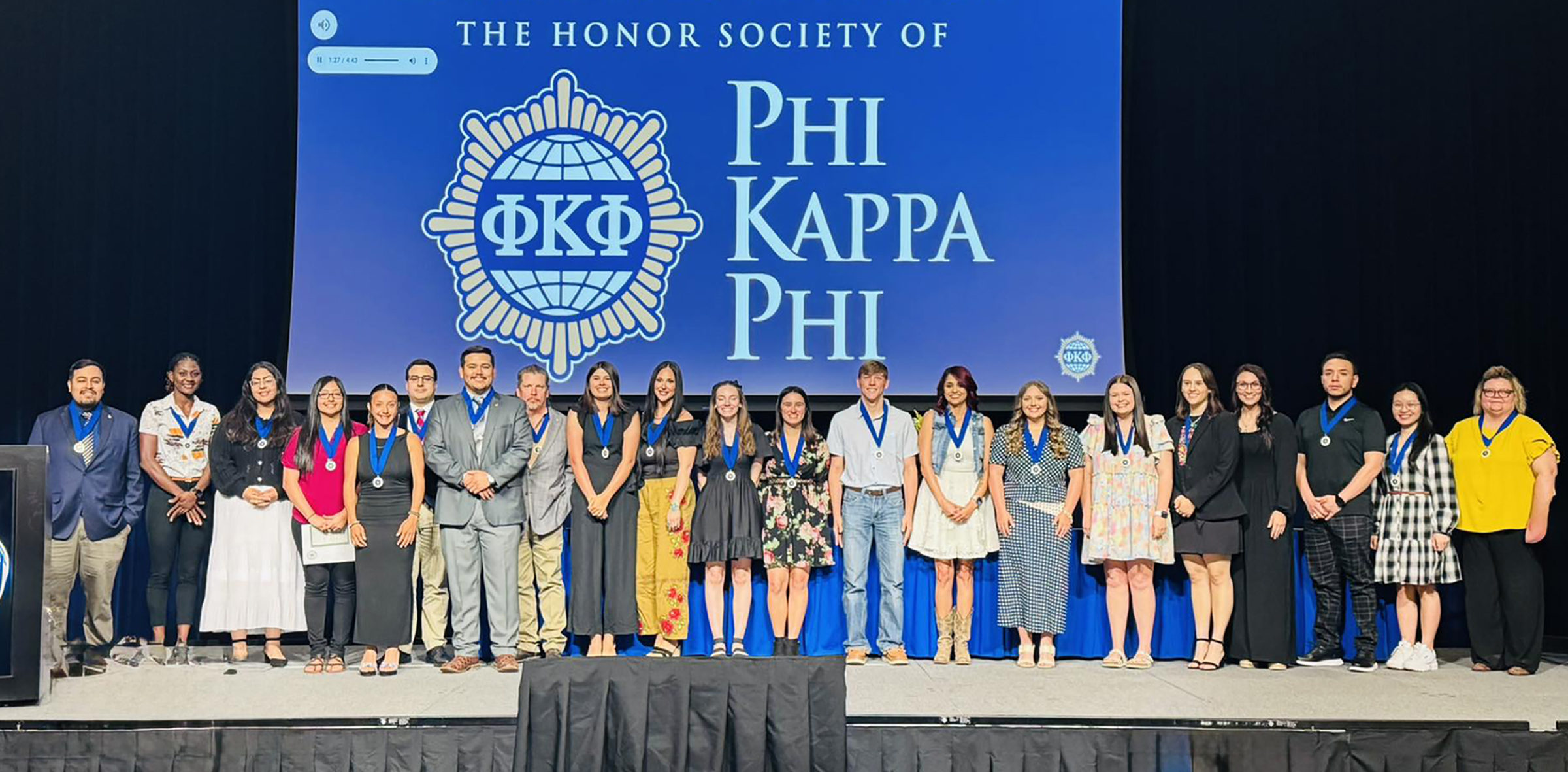 SAN ANGELO, TX - Angelo State University's chapter of the Phi Kappa Phi (PKP) national honor society recently inducted its spring 2025 class of 46 new student members during a special initiation ceremony in the Houston Harte University Center.