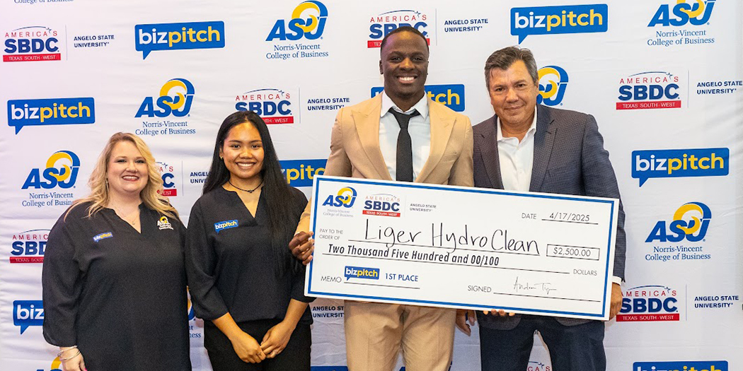 SAN ANGELO, TX - Angelo State University's Small Business Development Center (SBDC) and Norris-Vincent College of Business have announced the winners of the 2025 BizPitch student entrepreneurship competition following the recent live finals event in the LeGrand Alumni and Visitors Center.