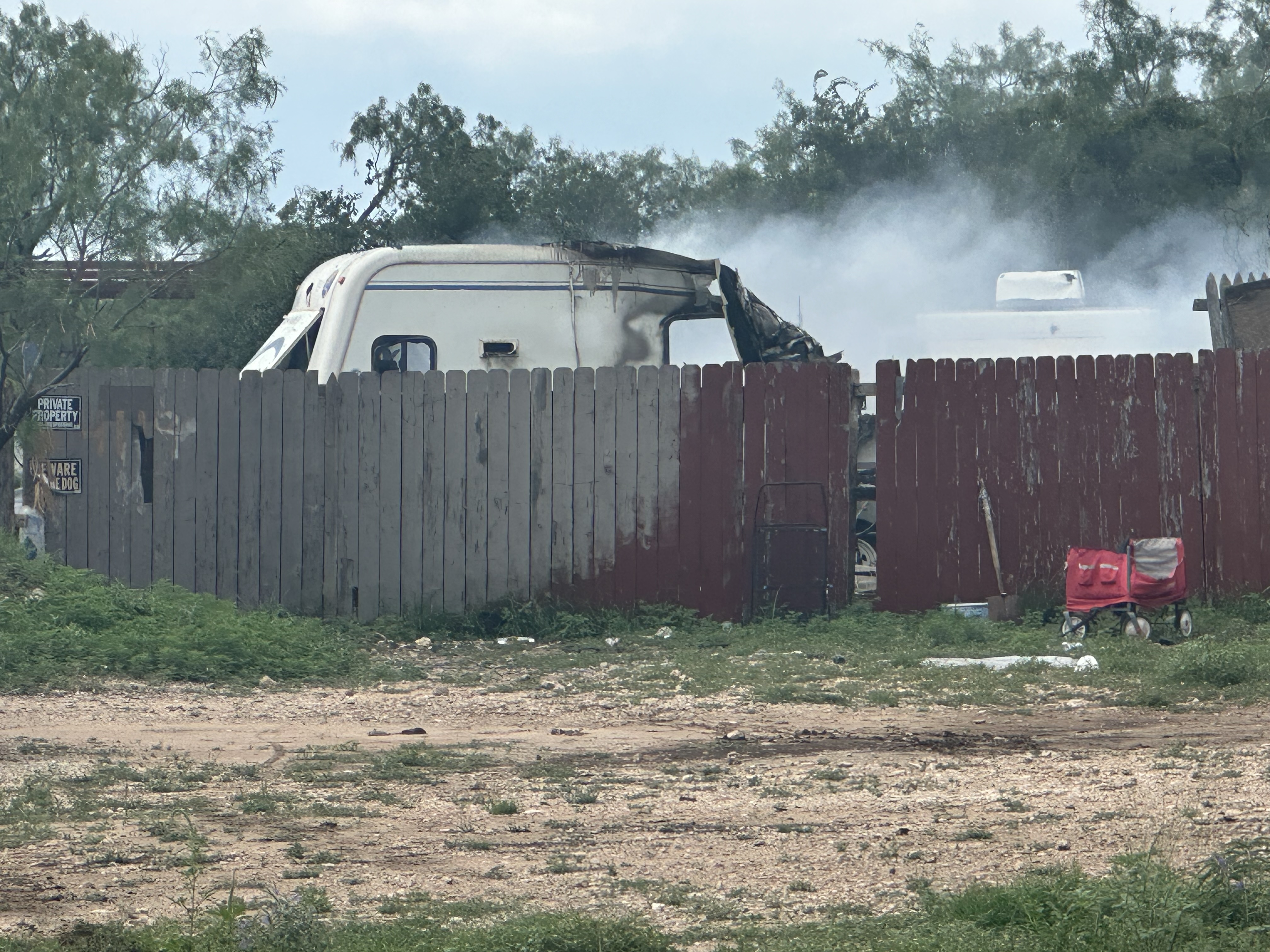 SAN ANGELO, TX — A camper trailer caught fire Tuesday in the back yard of a north San Angelo property.
