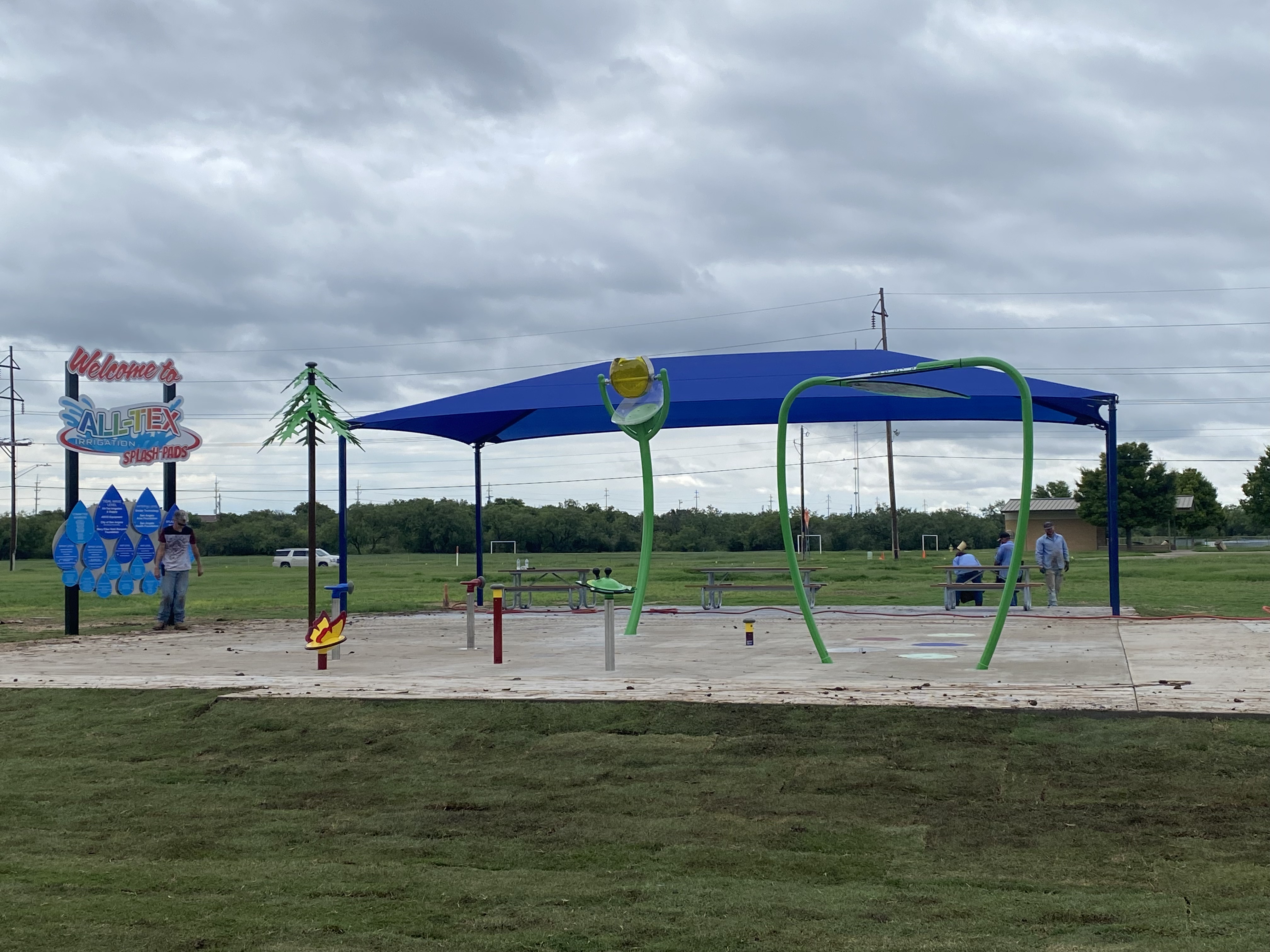The splash pad, located at 1402 Edmund Boulevard, marks the completion of the second of two new water play areas funded entirely through private donations and community fundraising led by All-Tex Irrigation. Nearly $875,000 was raised for the projects, with the majority coming from private donations and community fundraising. That does not include the more than $150,000 in in-kind contributions of labor and materials from local partners. Art in Uncommon Places contributed custom benches to enhance the splash pad environment.