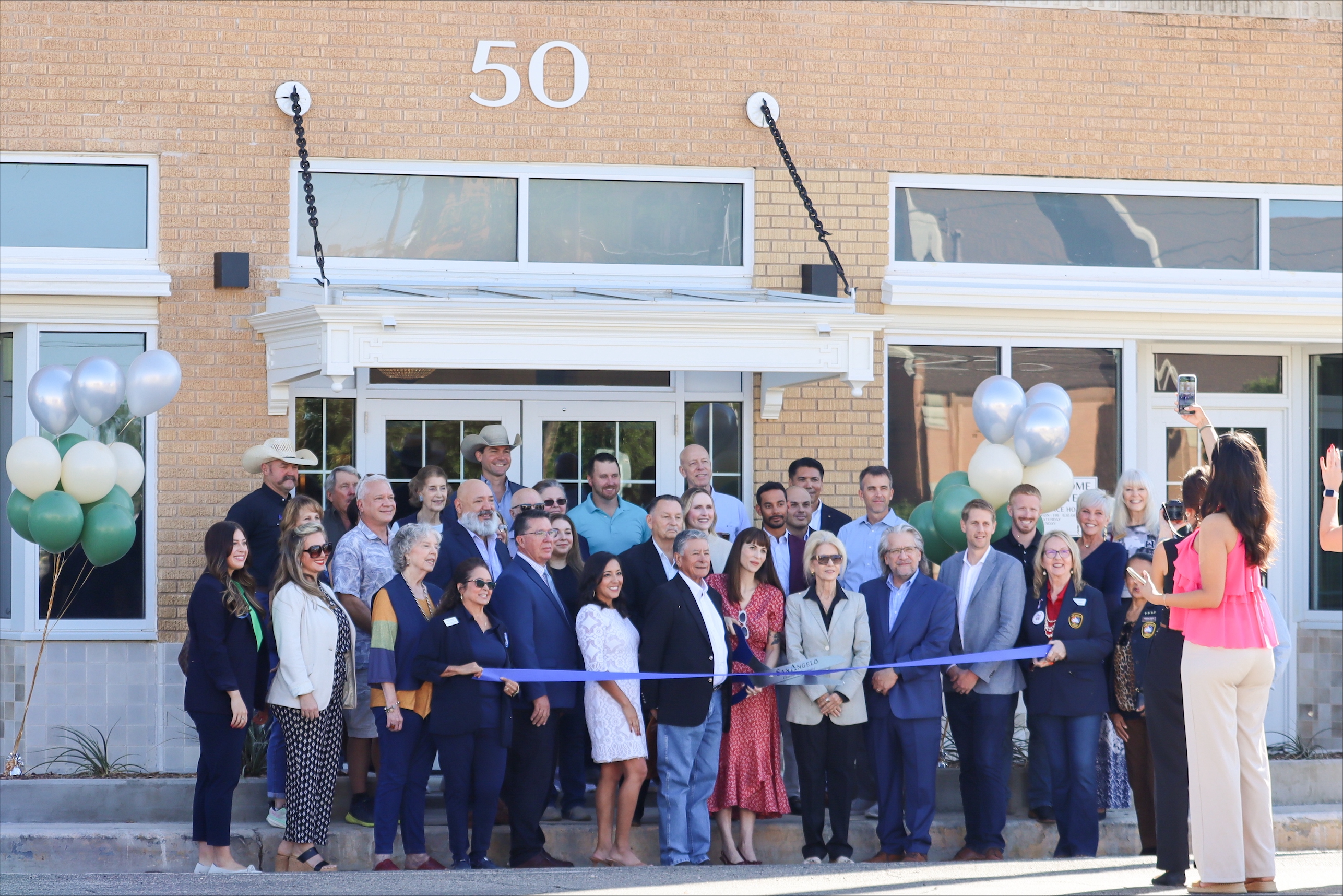 The event marked a major milestone in the revitalization of downtown San Angelo. City officials, community leaders, developers with Overland Property Group, and several dignitaries gathered on the steps of the newly renovated building to celebrate the transformation.