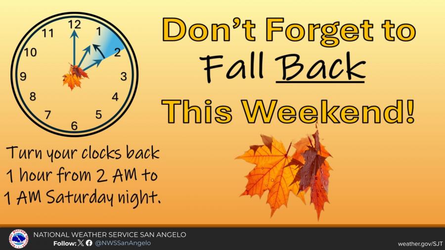 Daylight Saving Time ends this weekend. Clocks should be set back one hour at 2 a.m. Sunday.