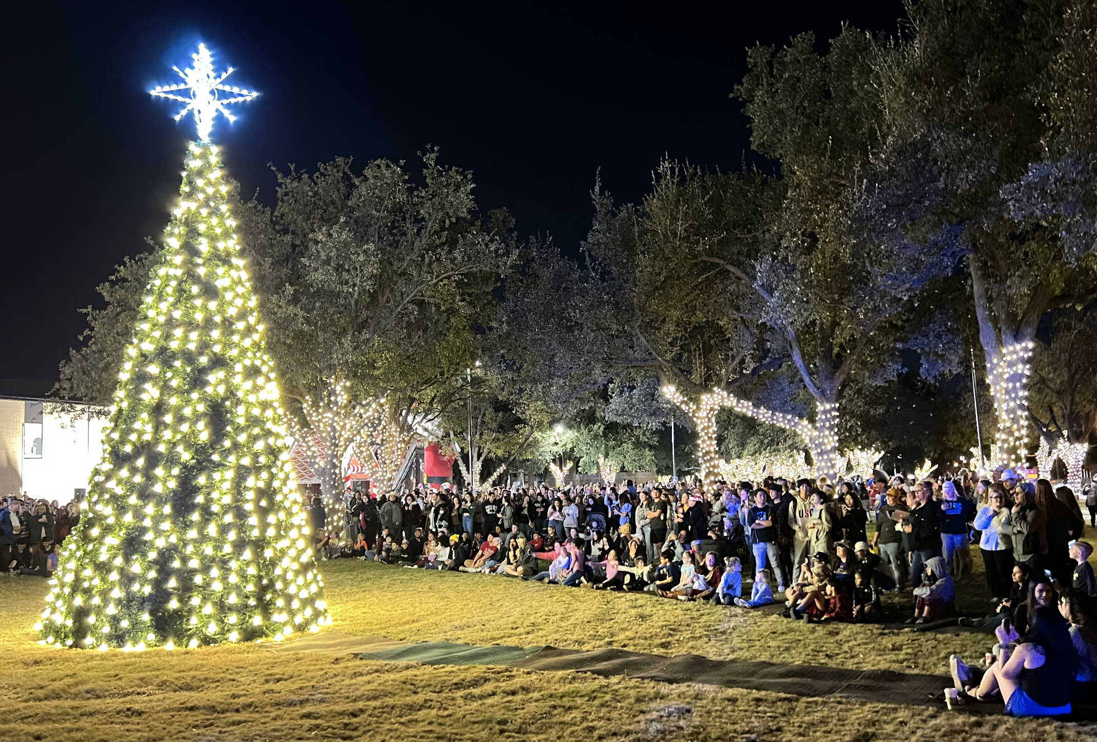 The community tree lighting ceremony is scheduled for Saturday, Dec. 6, beginning at 5:15 p.m. in the parking lot near West Concho Avenue and South Chadbourne Street. The San Angelo Community Band and the Twin Mountain Tonesmen are listed as scheduled performers.