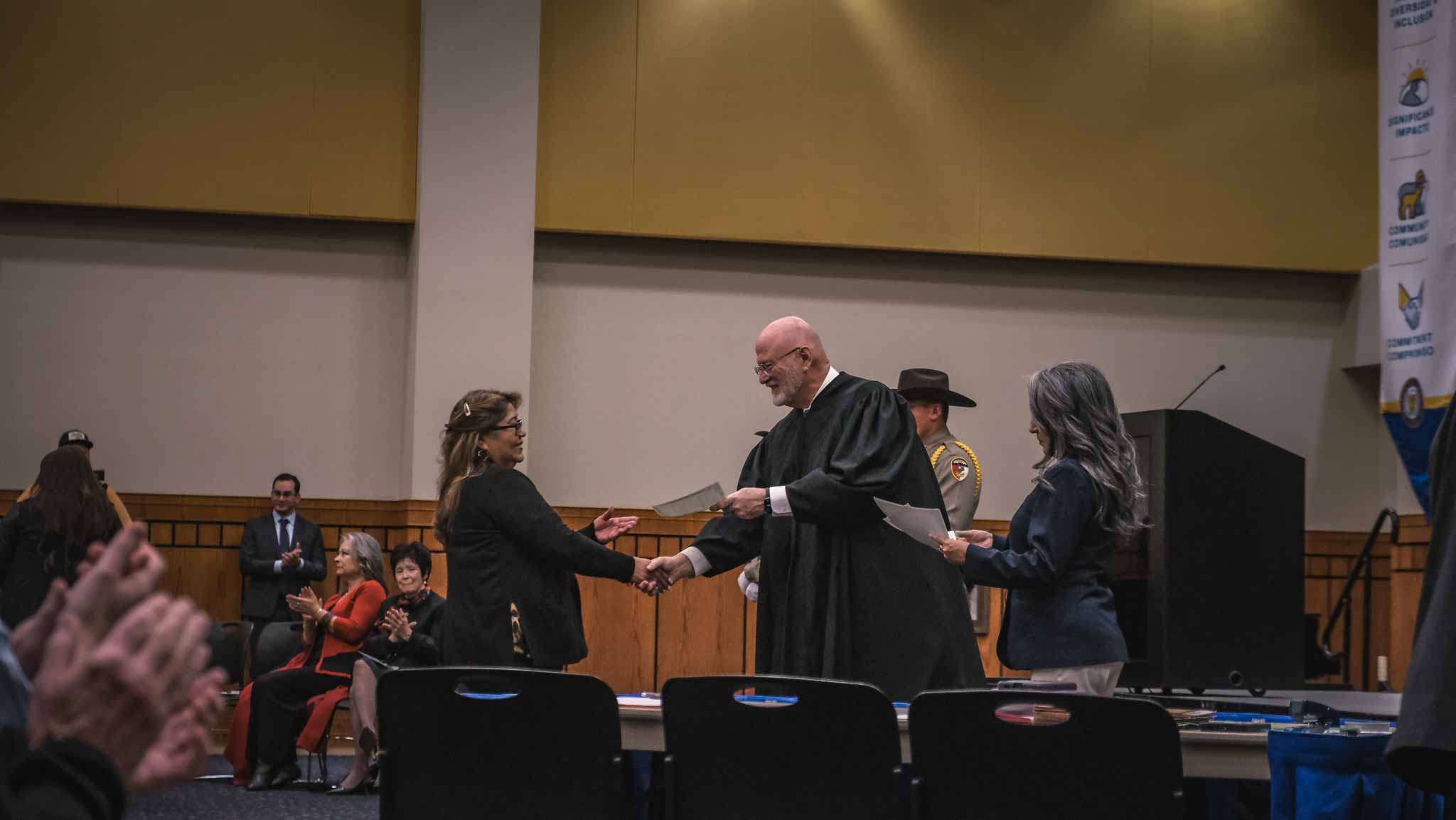 Judge Parker thanked the Tom Green County Sheriff’s Office for its assistance with the ceremony, specifically recognizing Lt. Quentin Williams and Deputy Brandon George. He also acknowledged the attendance of legislative representatives, including Lori Wilson, district director for State Rep. Drew Darby; Cheryl DeCordova, deputy director for State Sen. Charles Perry; and Kathy King, San Angelo regional director for U.S. Rep. August Pfluger.